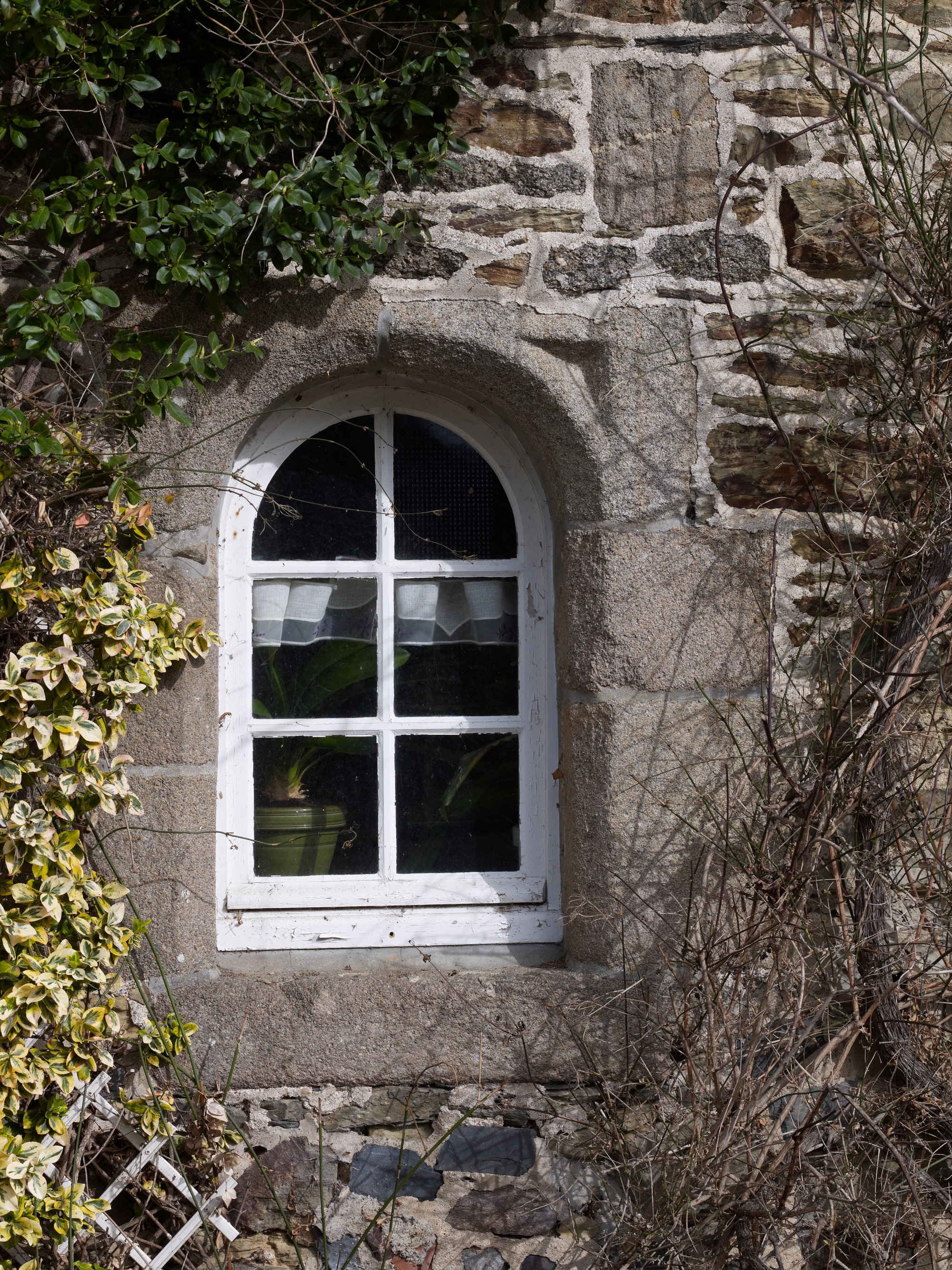 Manoir. Partie est. Détail d'une fenêtre du rez-de-chaussée avec écoinçons dans les anglesImmatriculation