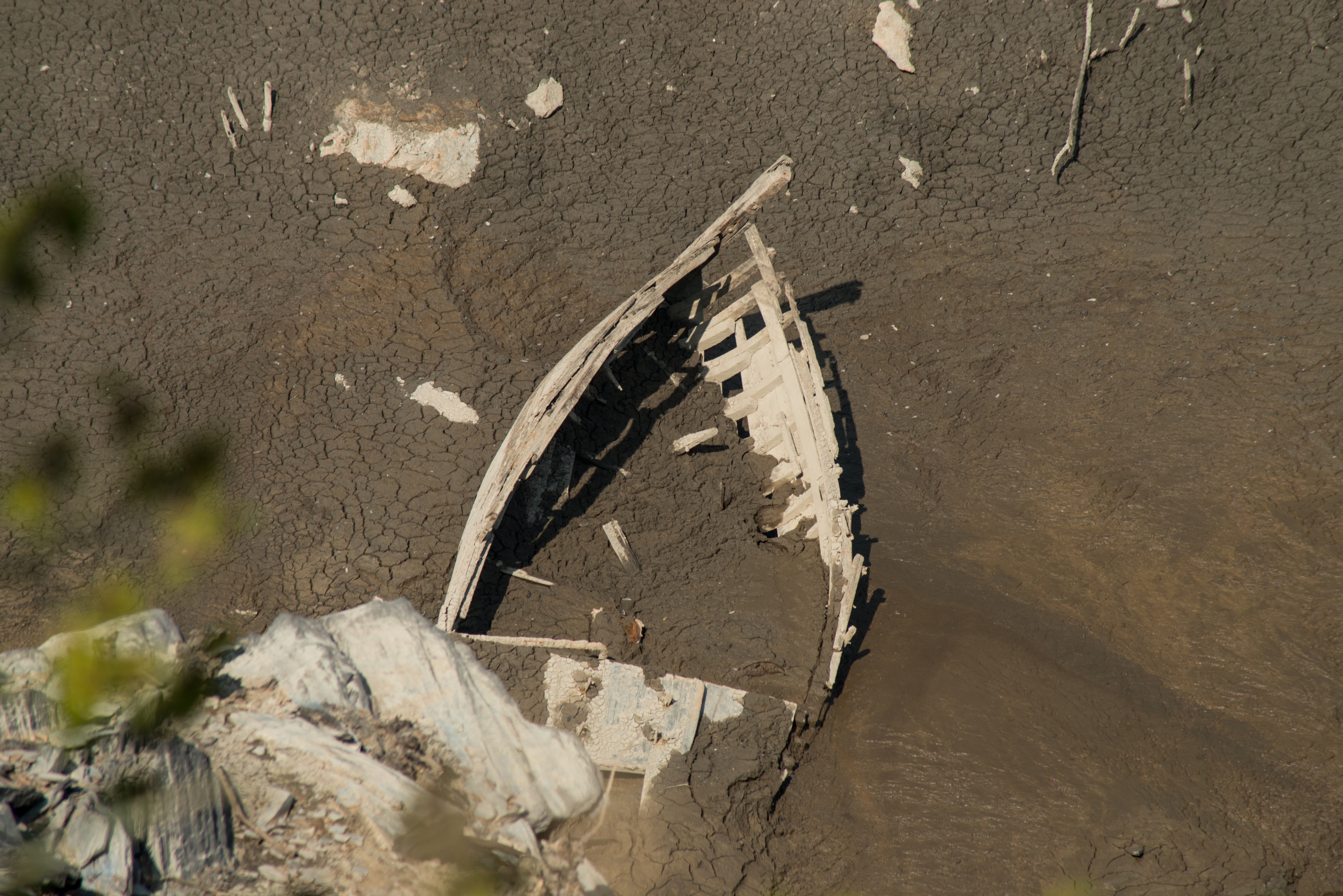 Assec du lac de Guerlédan 2015 : anse de Landroanec, bateauImmatriculation