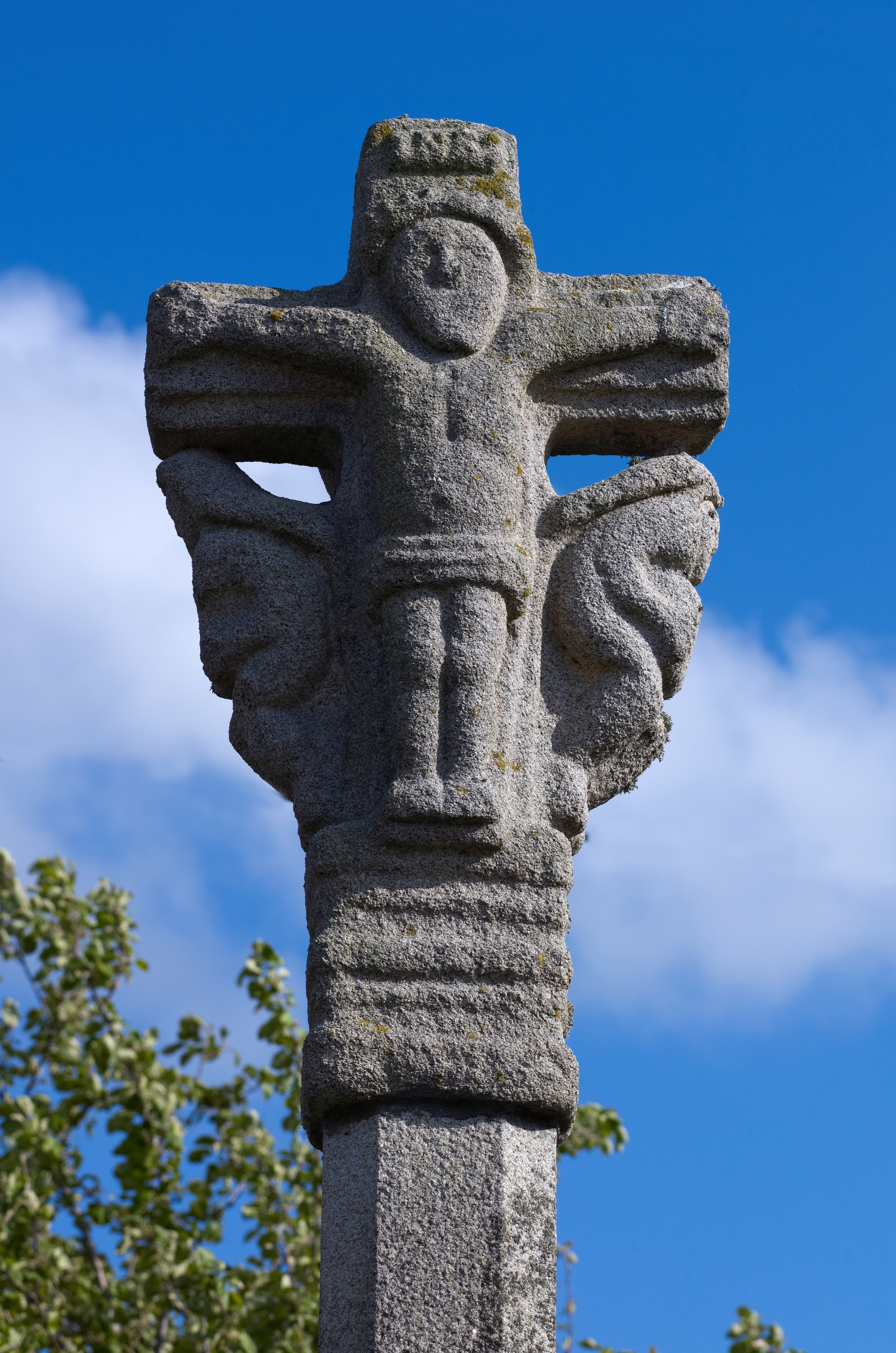 Rospez : croix de chemin, dite Croix Yell, détail de la croix sommitale, Christ en croixImmatriculation