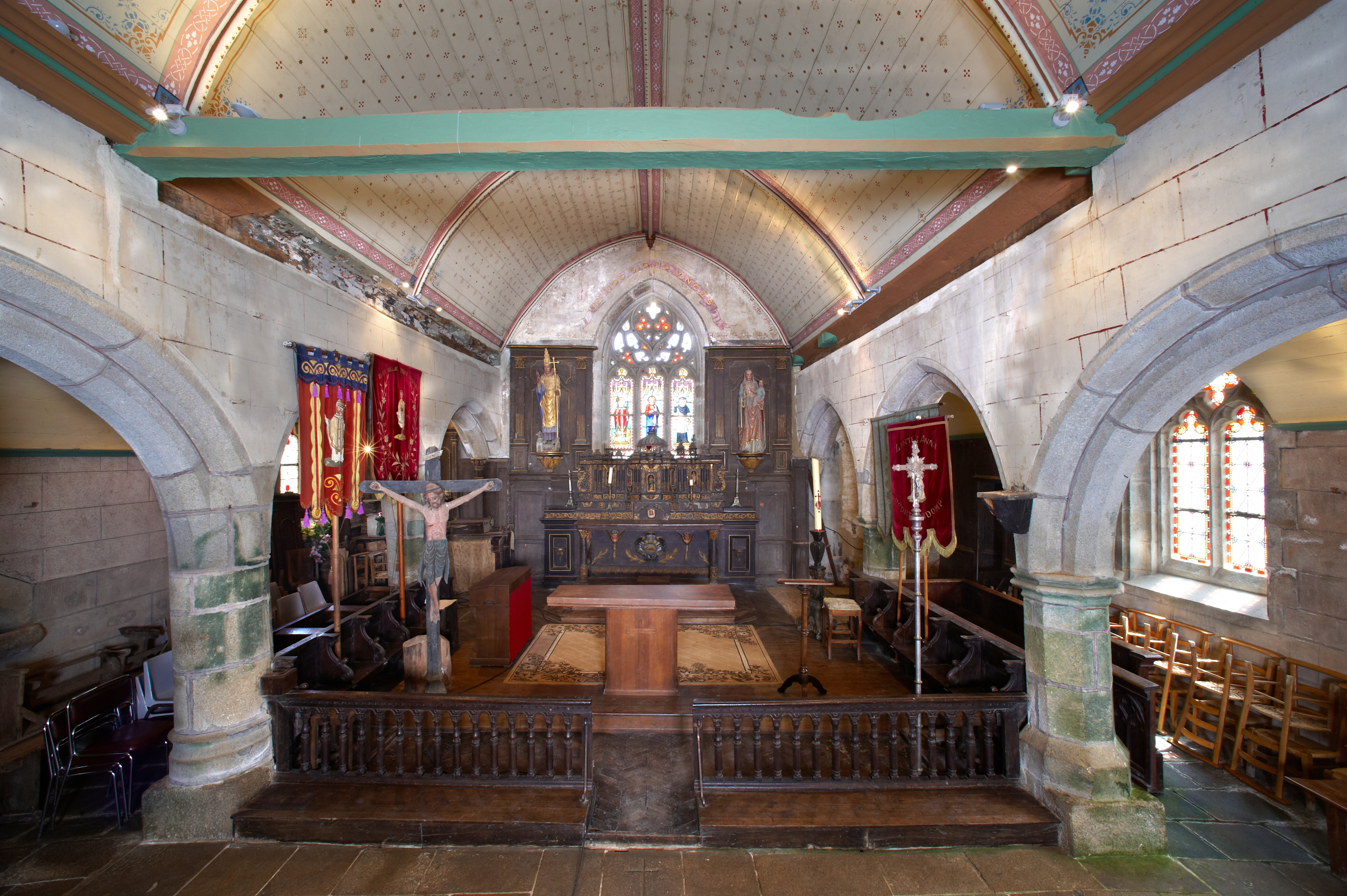Plouzélambre, le bourg, enclos paroissial : église Saint-Sylvestre, vue intérieure, vers le choeurImmatriculation