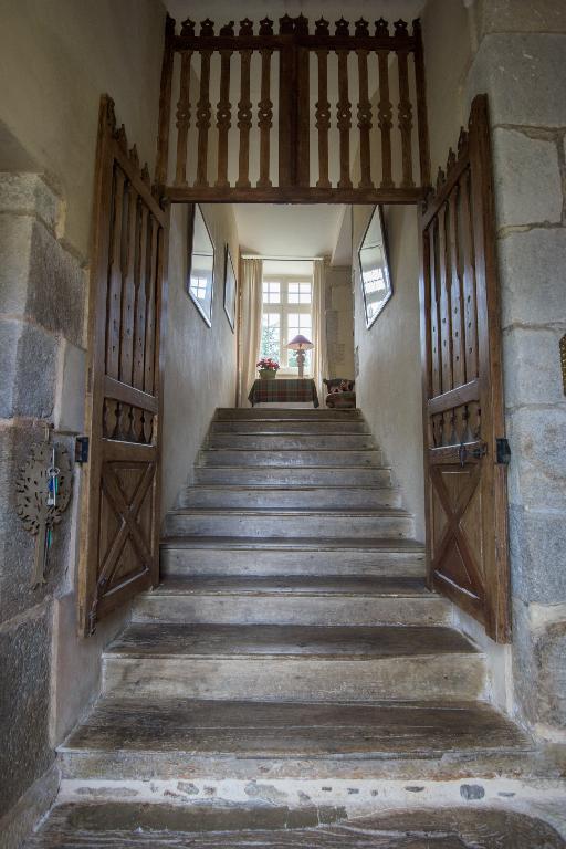 Escalier central et porte avec claustrât qui ferme l'escalierImmatriculation