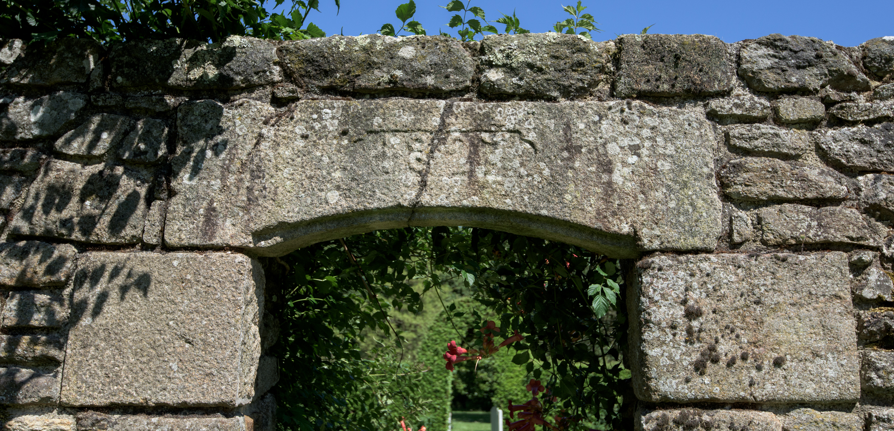 Linteau remployé dans le mur de jardin et portant la date de 1827Immatriculation