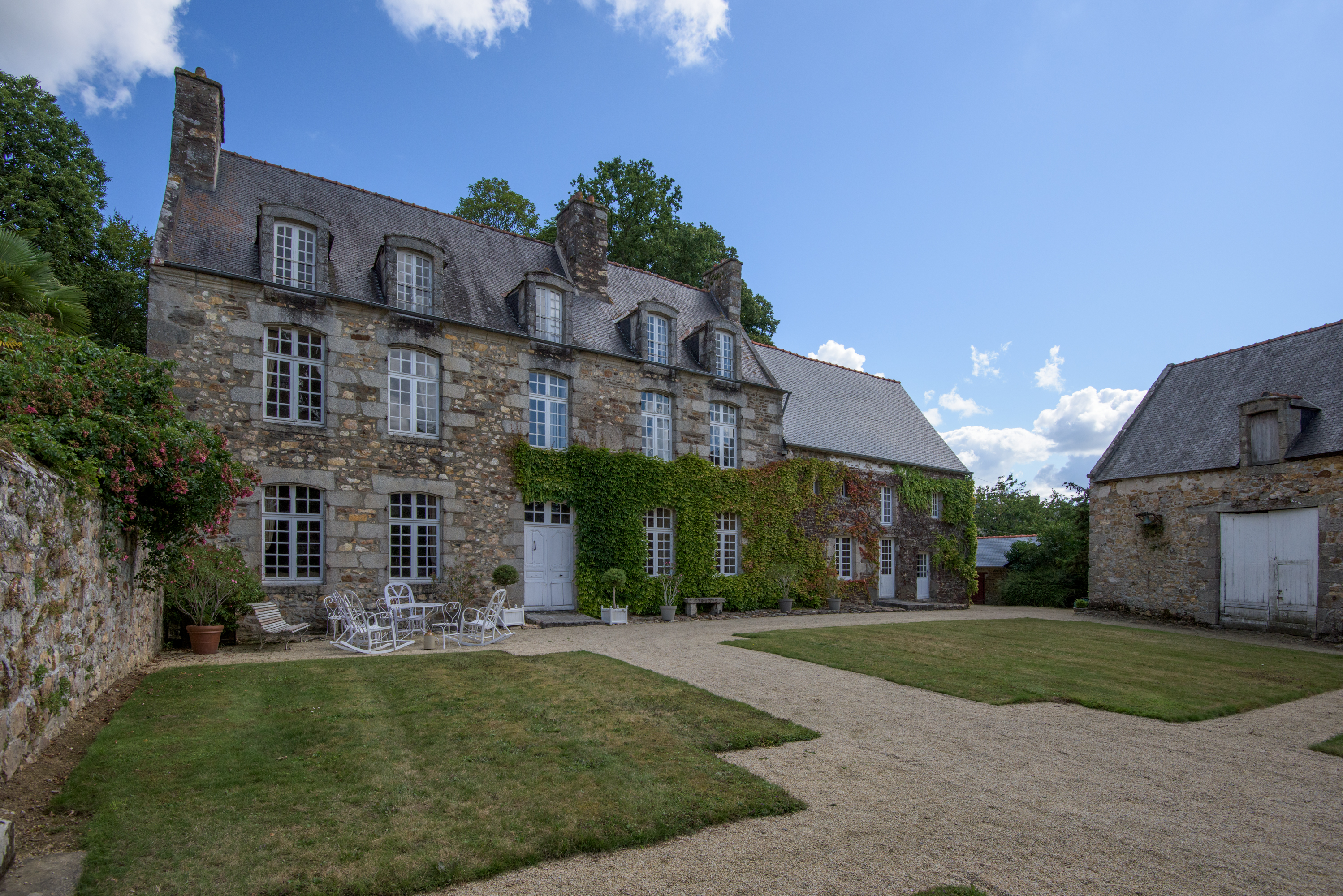 Façade antérieure du manoir et grangeImmatriculation
