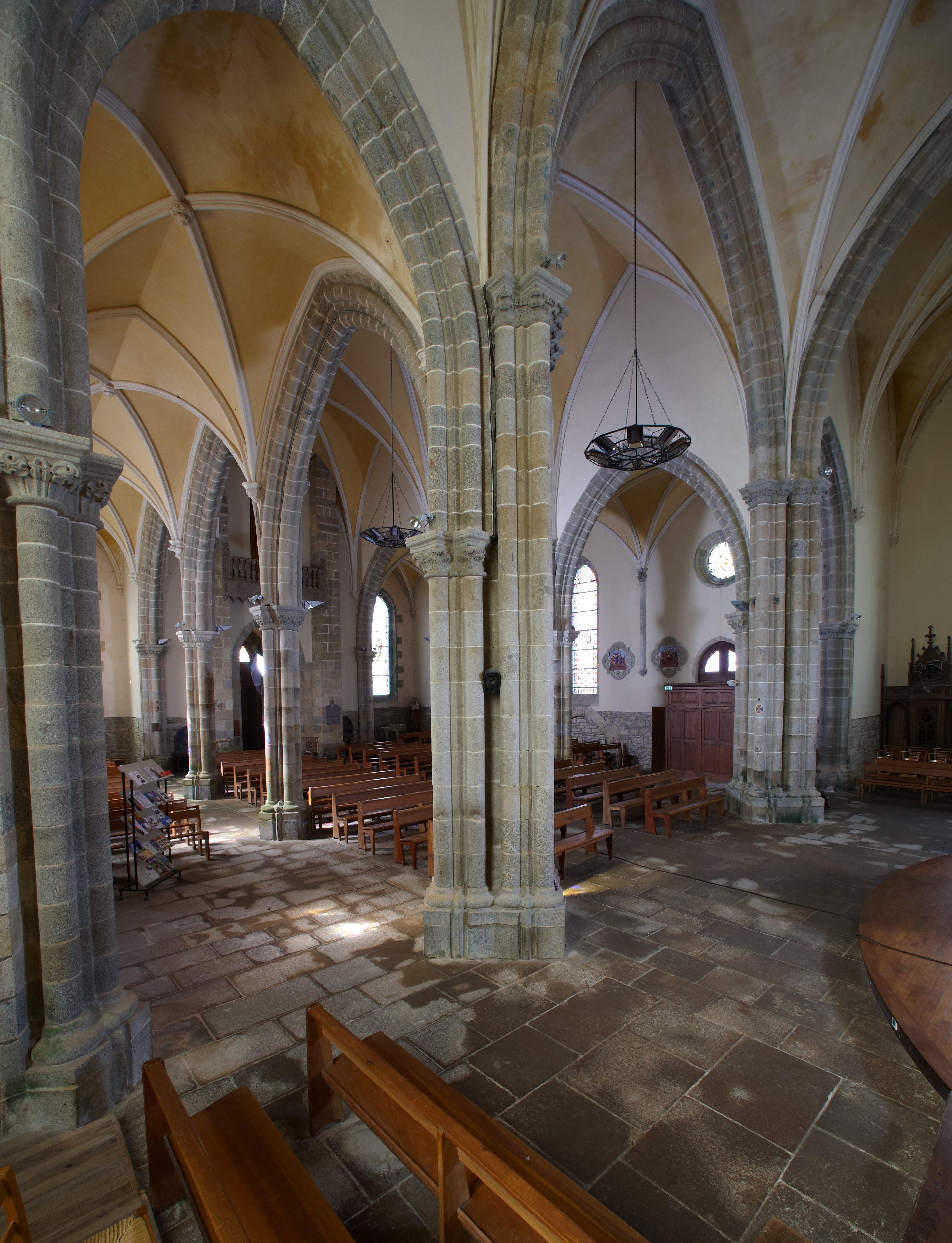 Rospez, le bourg : église paroissiale, la nef depuis le bras sud du transeptImmatriculation