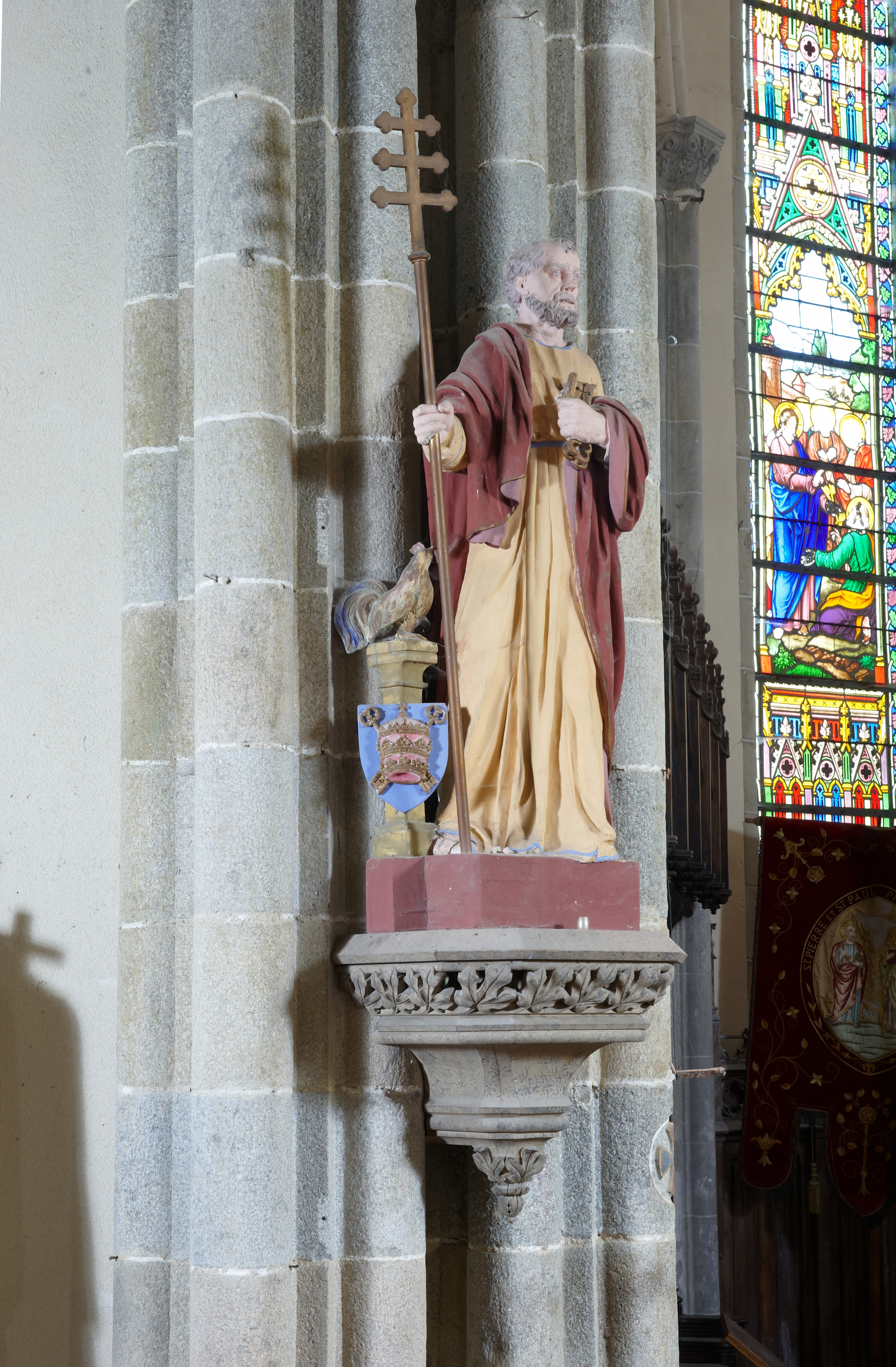 Rospez, le bourg : église paroissiale, statue de saint Pierre en bois polychromeImmatriculation
