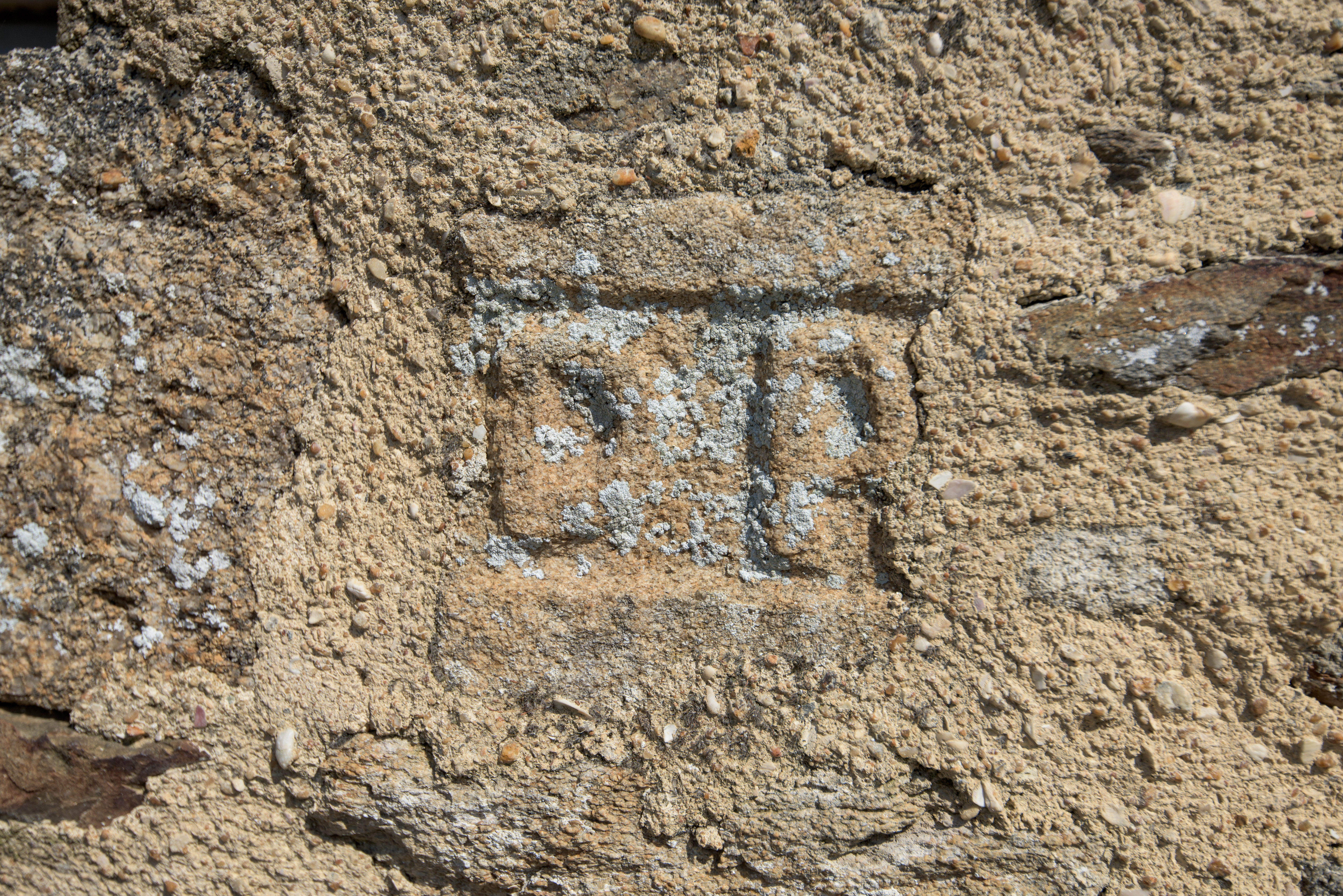 Initiales "DP" dans la maçonnerie, façade ouestImmatriculation