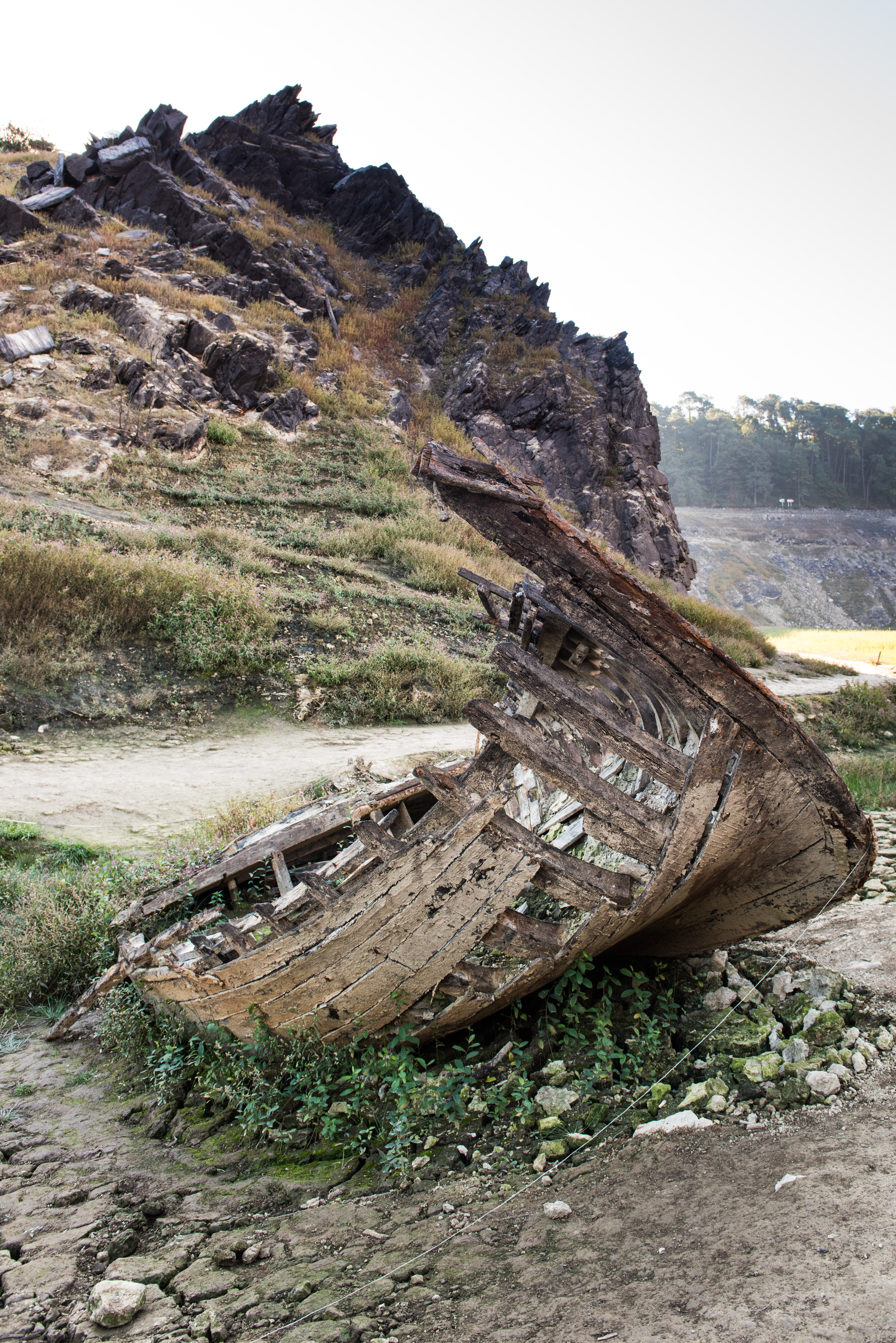 Assec du lac de Guerlédan 2015, vestige canot (coulé durant la Seconde guerre Mondiale)Immatriculation