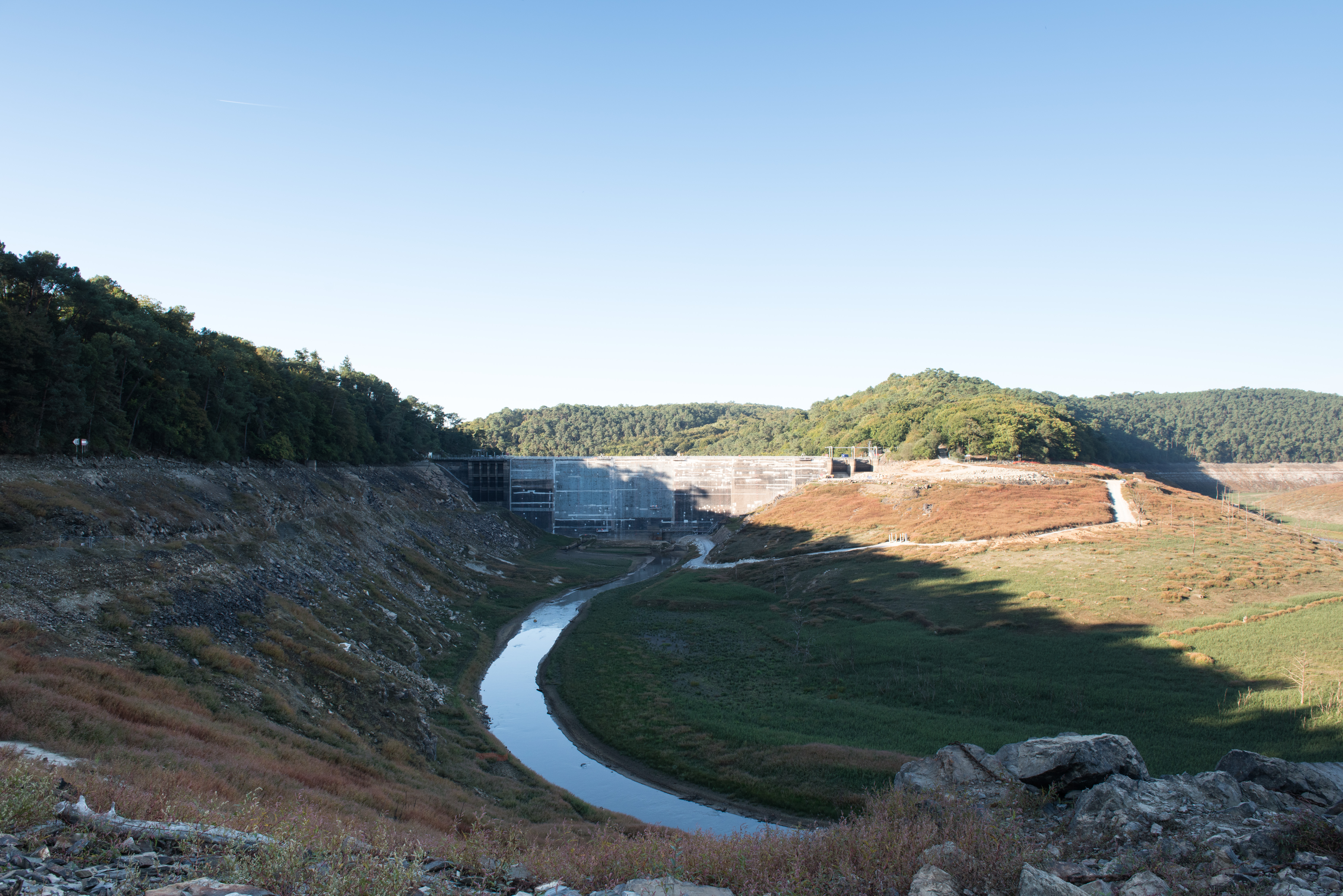 Barrage de Guerlédan et ancien site d'écluse de Moulin Neuf depuis la base de plein airImmatriculation