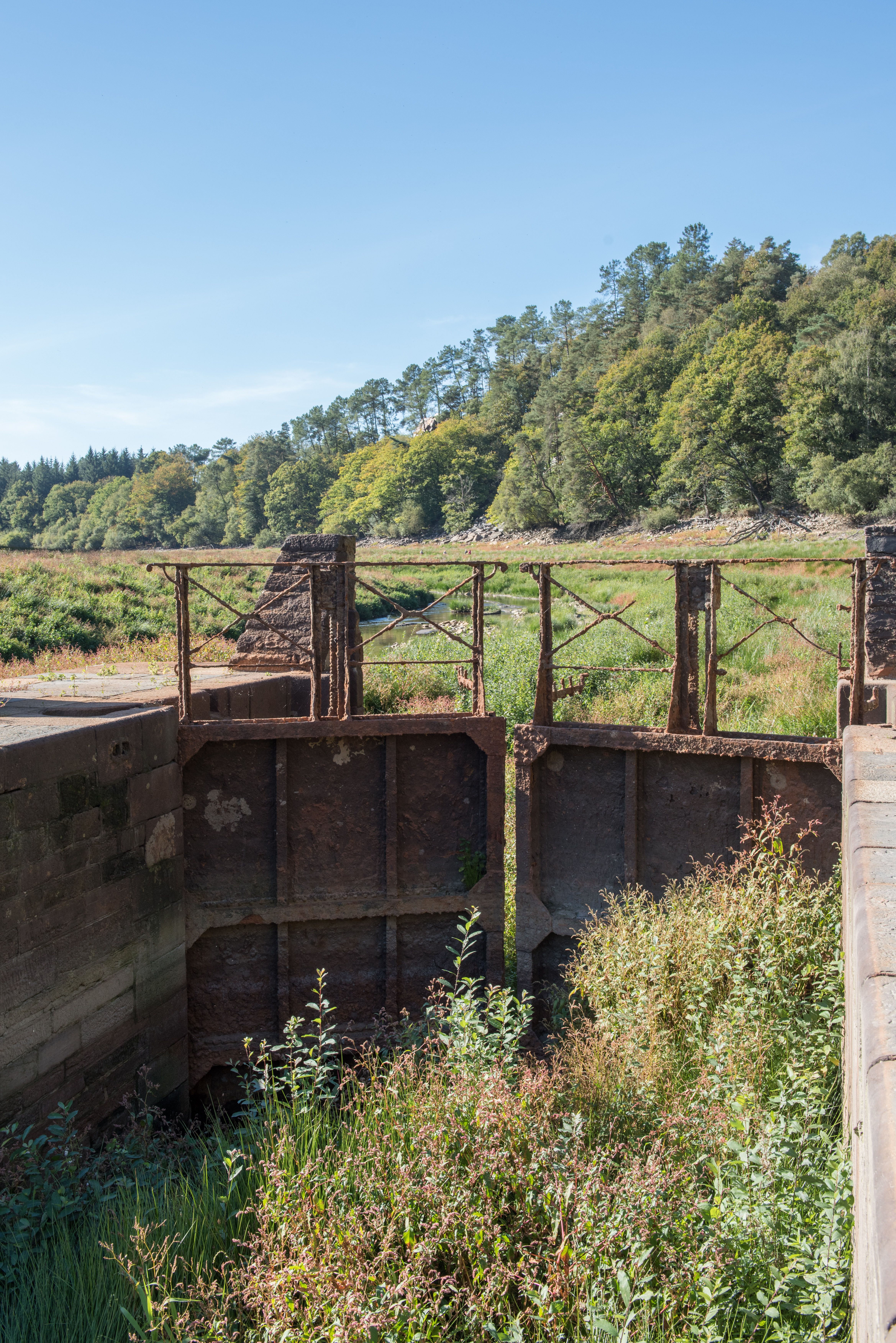 Site d'écluse de Toul Houët, sas, vantaux, garde-corps, vue depuis le sas vers l'amontImmatriculation