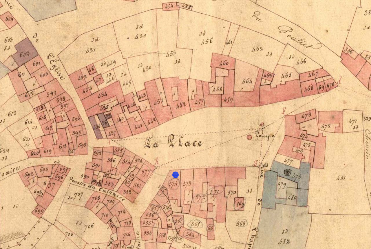 Localisation du 1 rue de la fontaine. Extrait du cadastre ancien (A.D. 22, série 3 P)Immatriculation