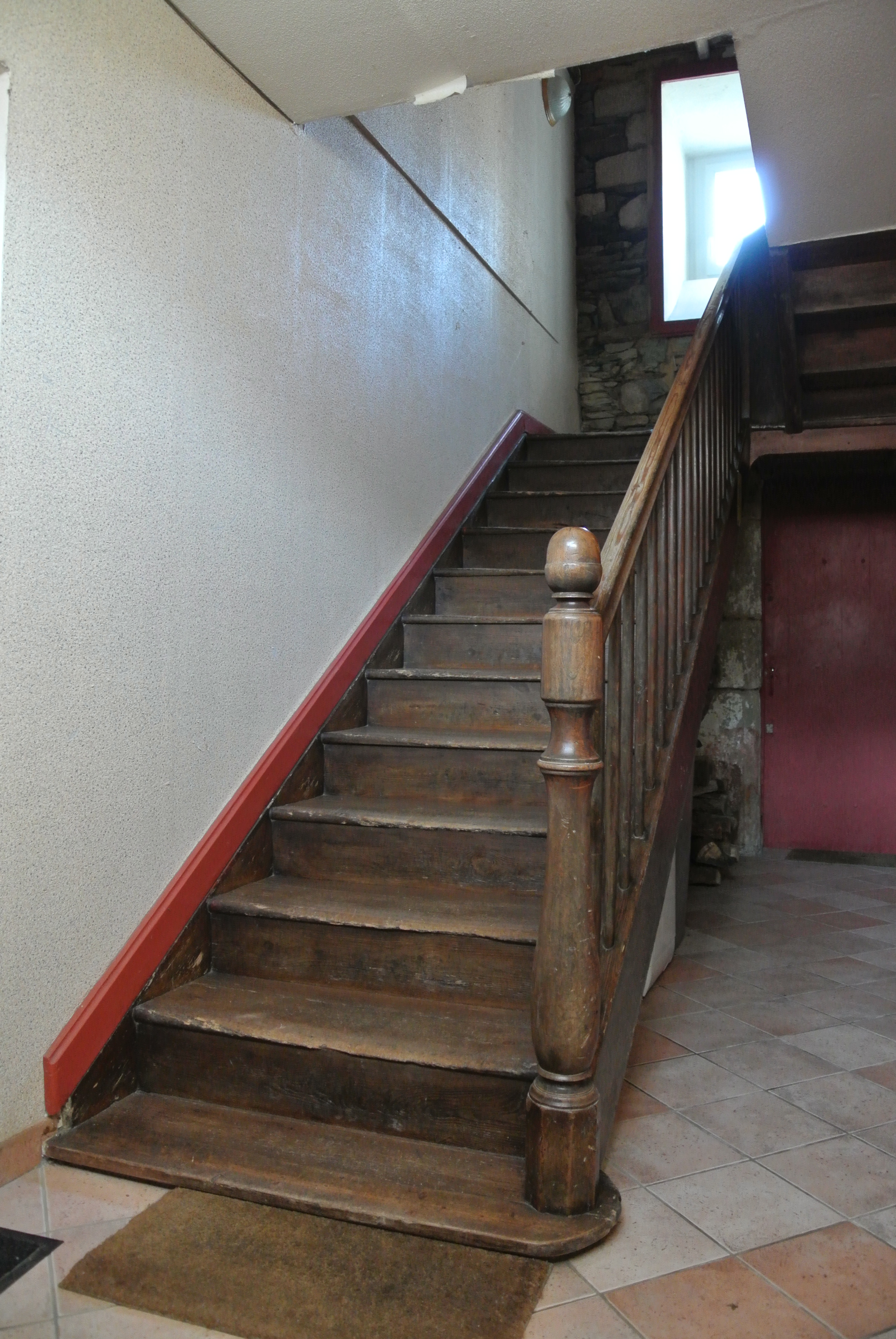 Maison n°15 place du martray. Première gendarmerie de La Roche-Derrien, 1er quart 19e siècle. Hall d'entrée avec escalierImmatriculation