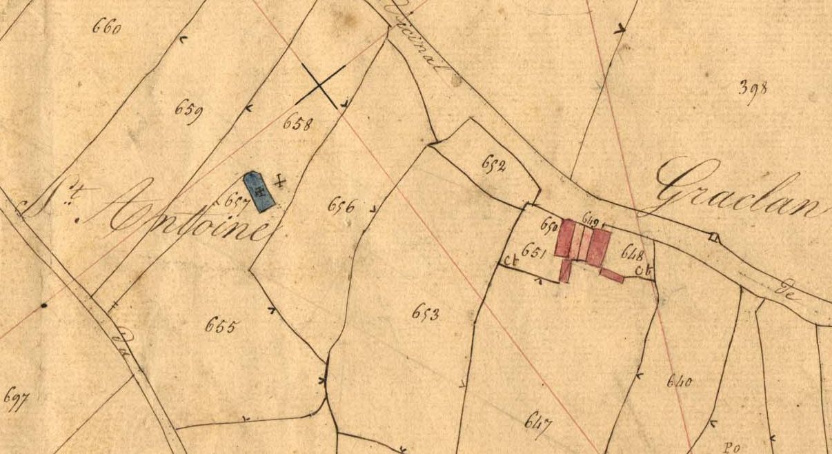La chapelle Saint-Antoine en 1835. Extrait du cadastre ancien, section A2 (A.D. 22, série 3 P)Immatriculation