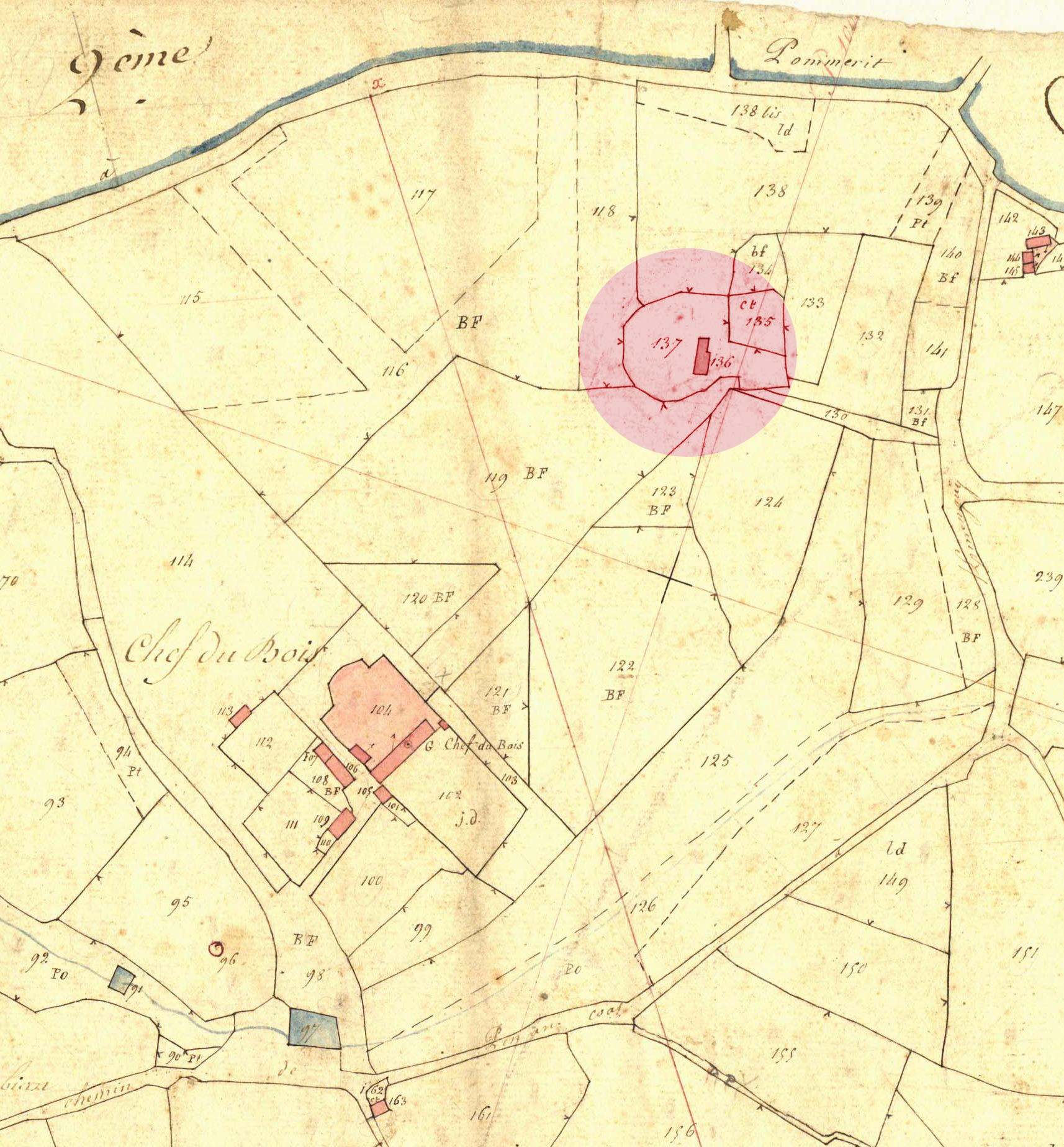 La motte castrale du Plessis en 1835. Extrait du cadastre ancien (A.D. 22, série 3 P 247)Immatriculation