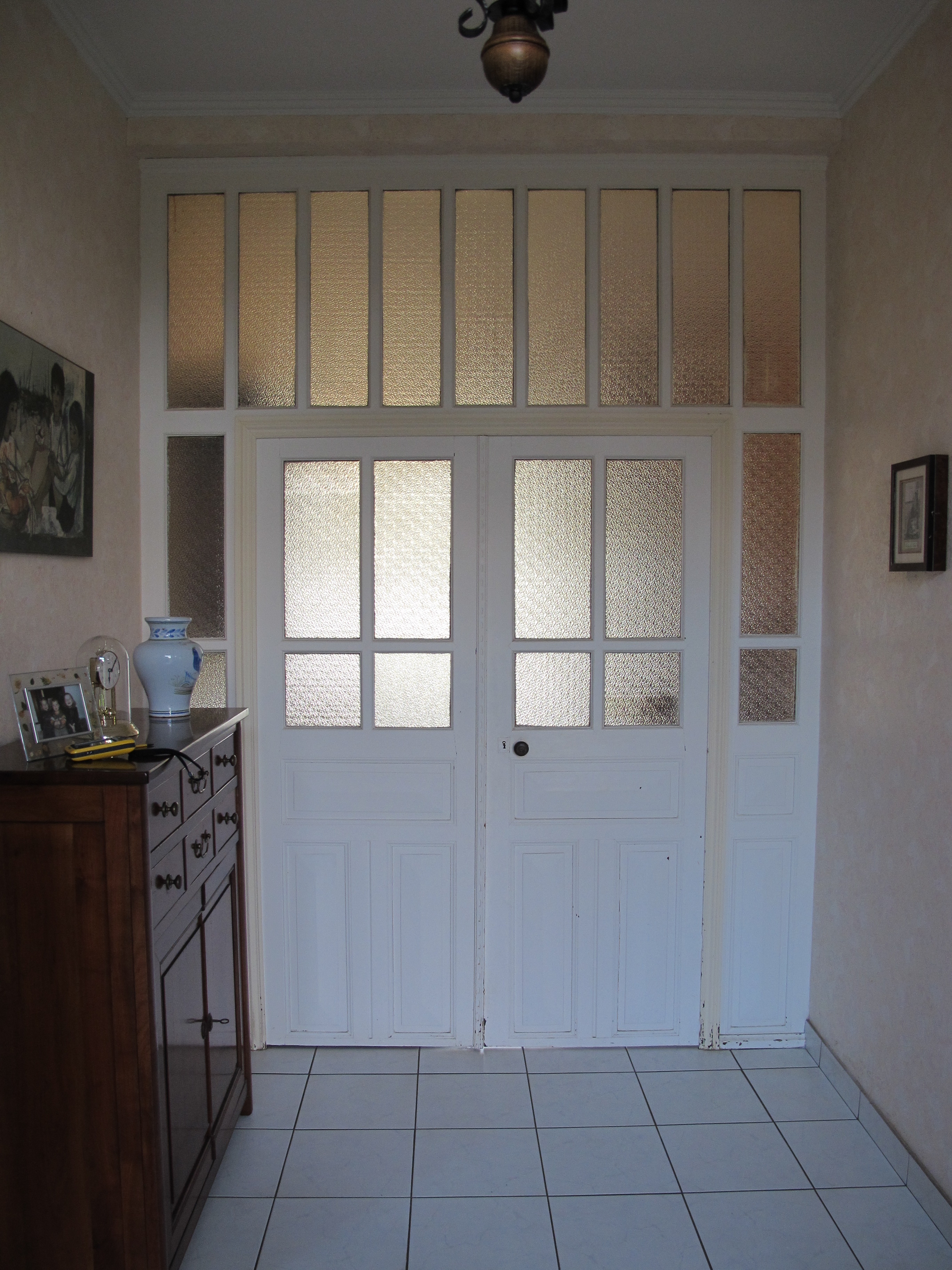 Keravel. Logis de ferme, 2e moitié 19e siècle. Vestibule avec porte intérieure à tympan et deux battantsImmatriculation