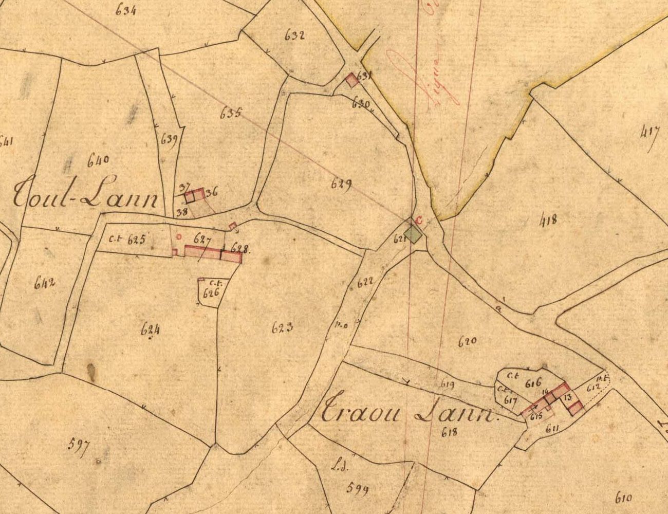 Traou Lann en 1835. Extrait du cadastre ancien, section B2 (A.D. 22, série 3 P 247)Immatriculation