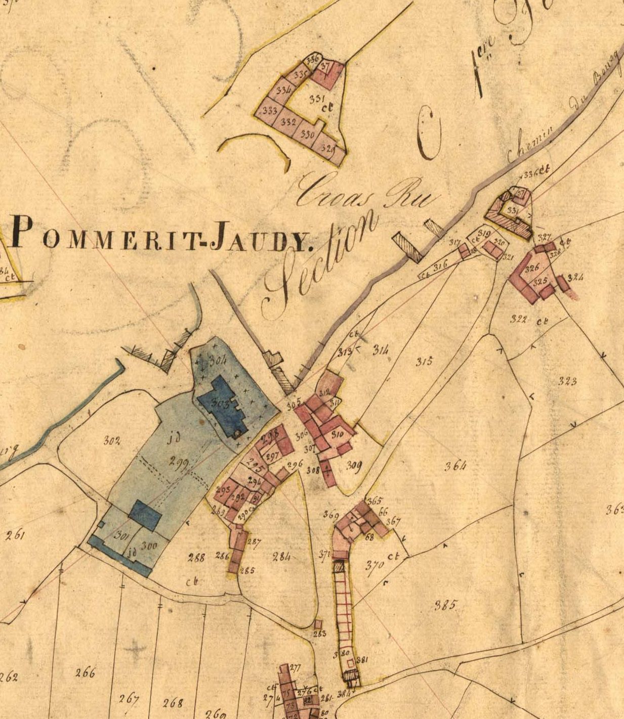 Croaz Ru en 1835. Extrait du cadastre ancien, section A2 (A.D 22, série 3P 247)Immatriculation