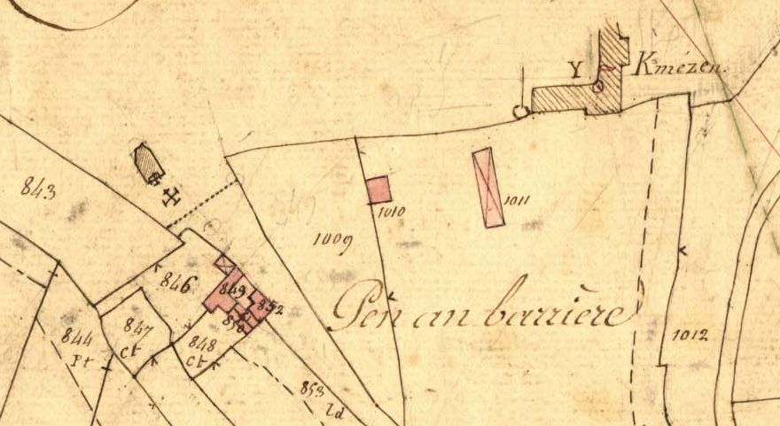 La croix de Kermézen en 1835. Extrait du cadastre ancien, section A3 (A.D. 22, série 3P 247)Immatriculation