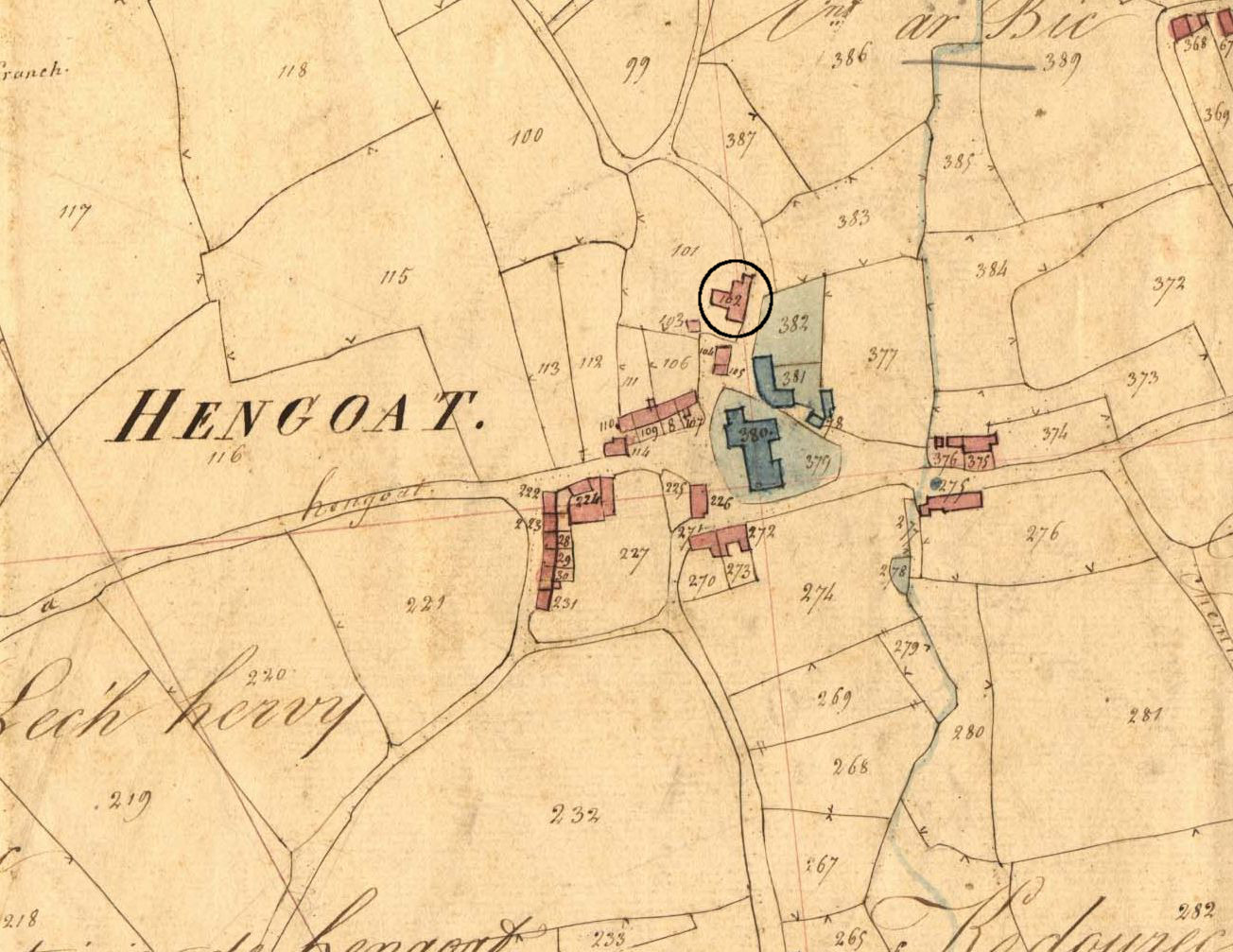 Maison rue des moulins en 1835. Extrait du cadastre ancien, section B1 (A.D. 22, série 3P 078)Immatriculation