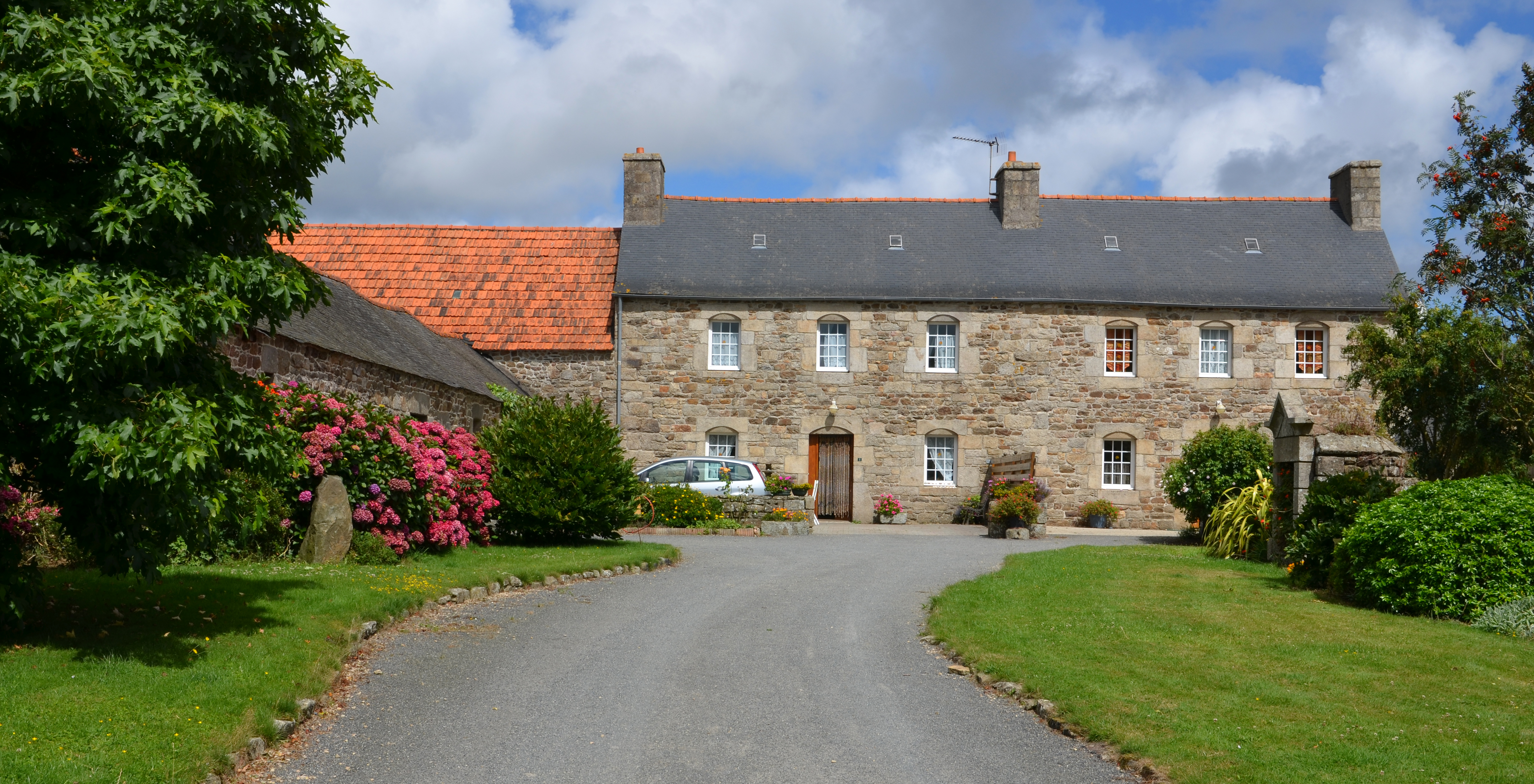 Trémel, Kergavarec : ferme, élévation antérieure orientée vers le sud. Le logis central est daté par millésime de 1833Immatriculation
