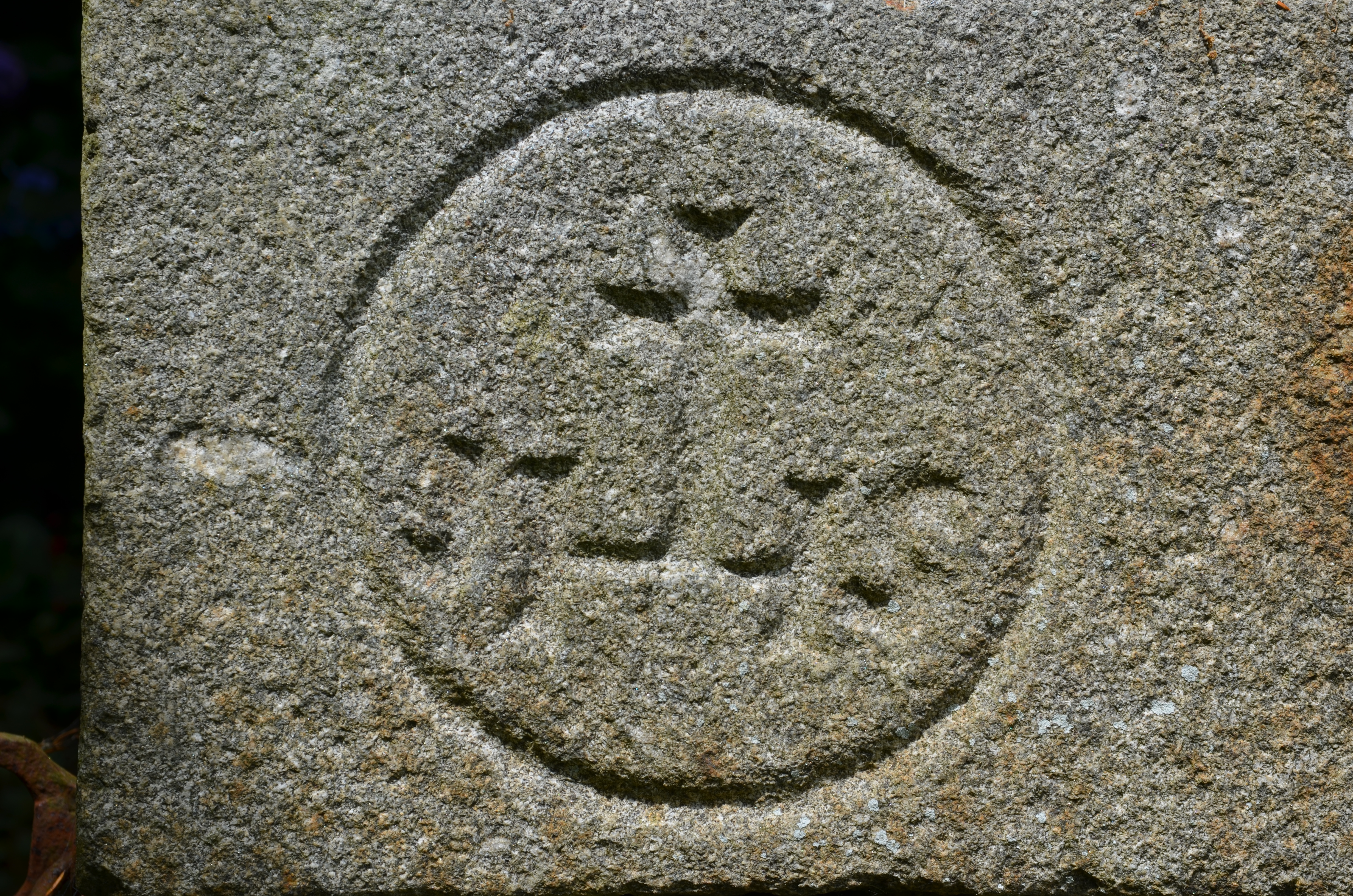 Trémel, Kerviel : ferme, détail du monogramme du Christ "JHS". En latin IESUS HOMO ou HOMINUM) SALVATOR, "Jésus Sauveur des Hommes". En breton, JEZUZ HOR SALVER, "Jésus Notre Sauveur"Immatriculation