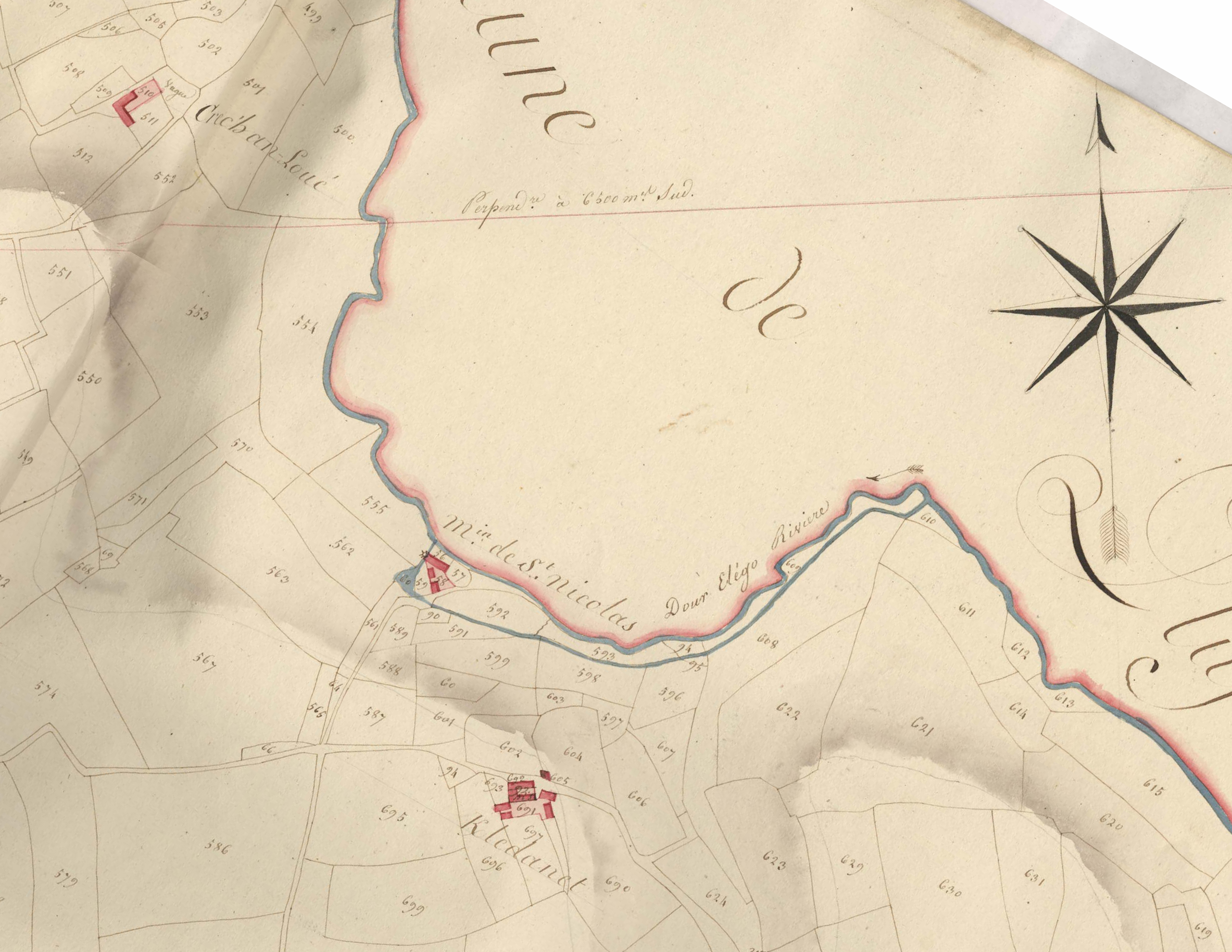Extrait du cadastre ancien de la commune de Plestin, 1816 : moulin à eau de Saint-Nicolas, emplacement originelImmatriculation