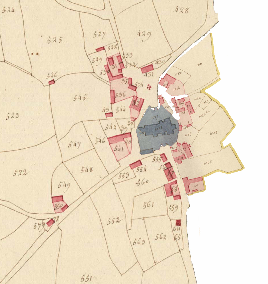 Extrait du cadastre ancien de la commune de Plufur, 1816 : le bourg (assemblage)Immatriculation