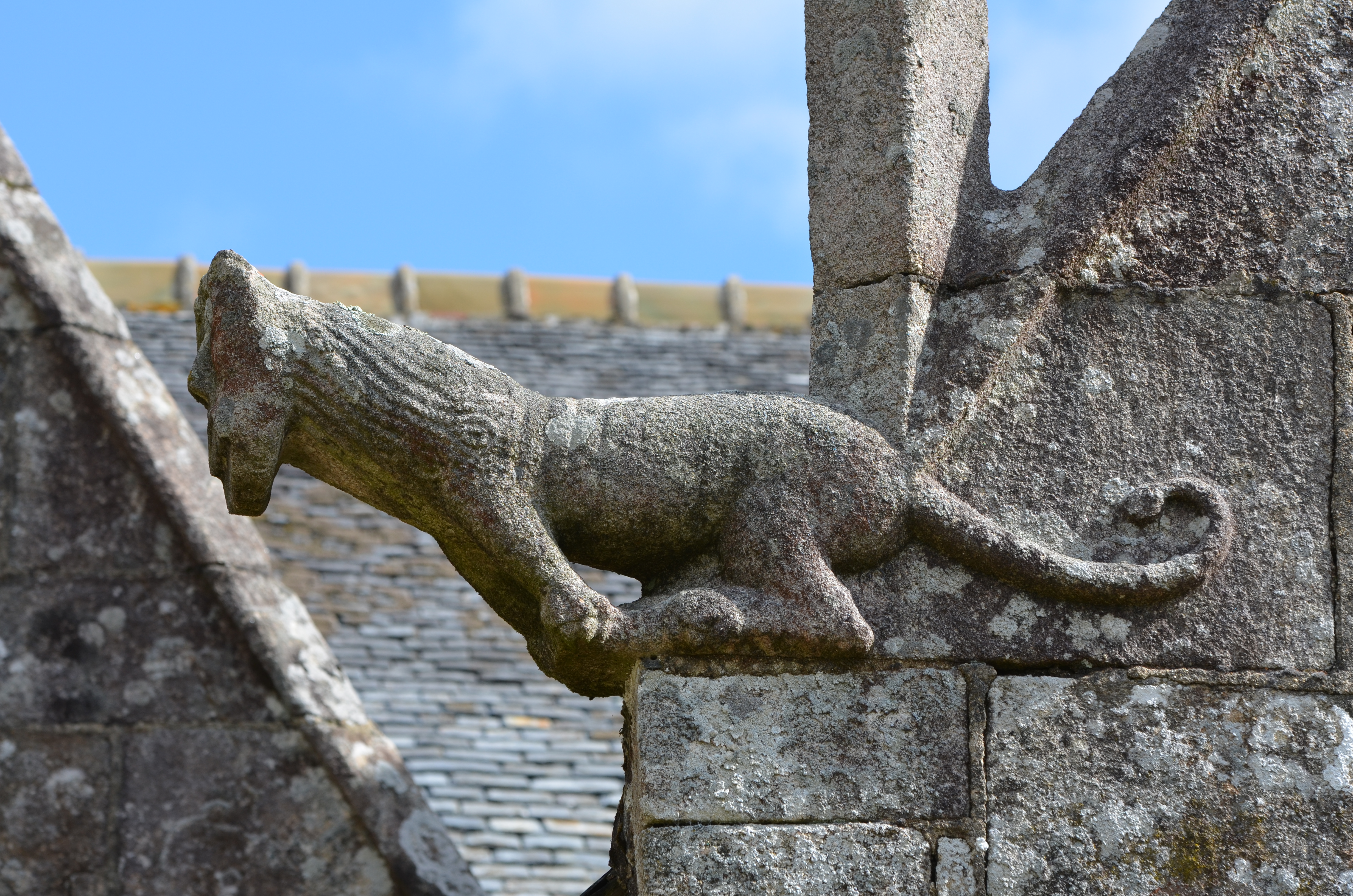 Trémel, le bourg : église paroissiale Notre-Dame, transept sud, vue de détail de l'une des deux crossettes sculptéesImmatriculation
