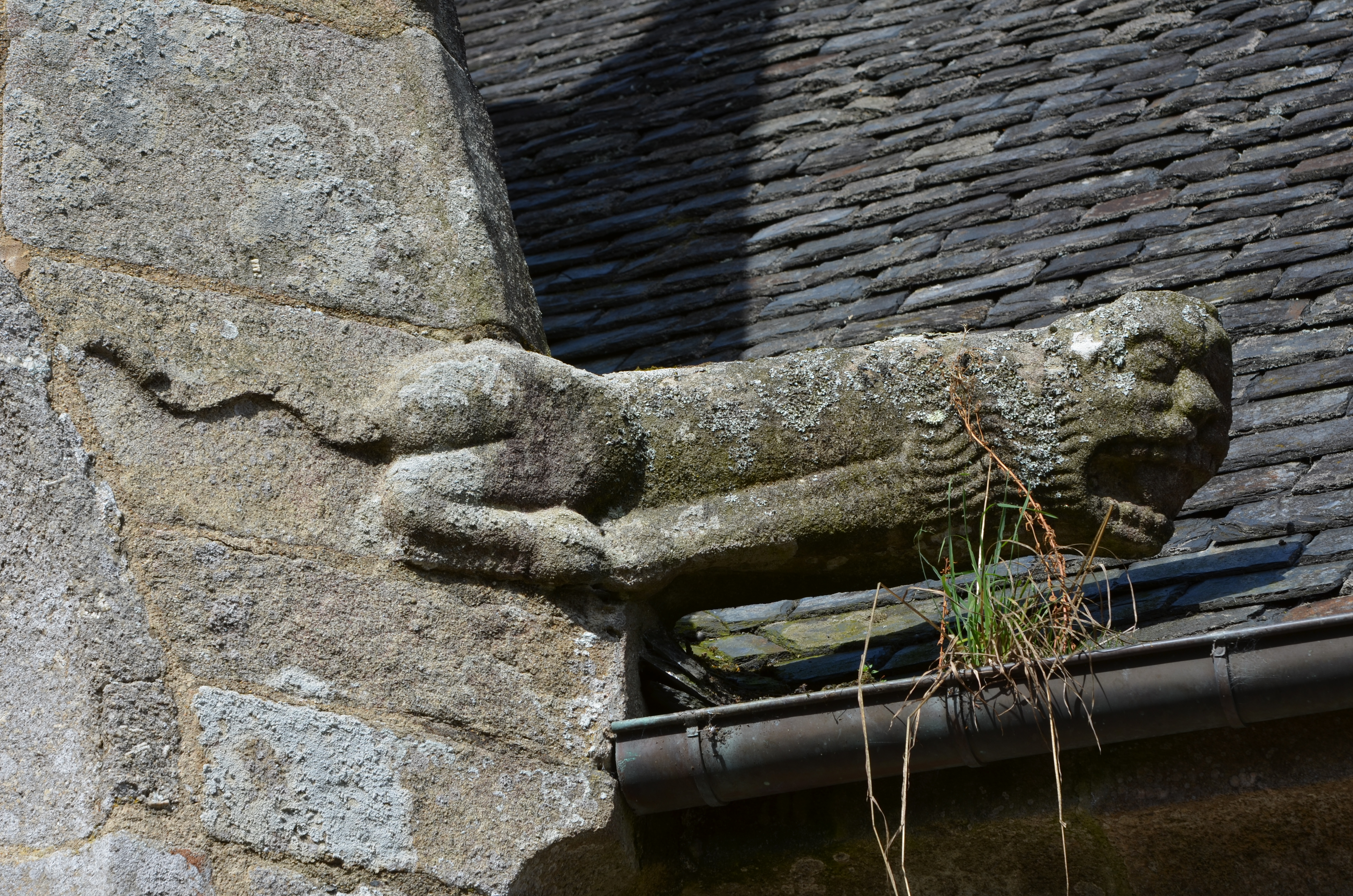Trémel, le bourg : église paroissiale Notre-Dame, chevet à noues multiples, détail de l'une des crossettes sculptéesImmatriculation