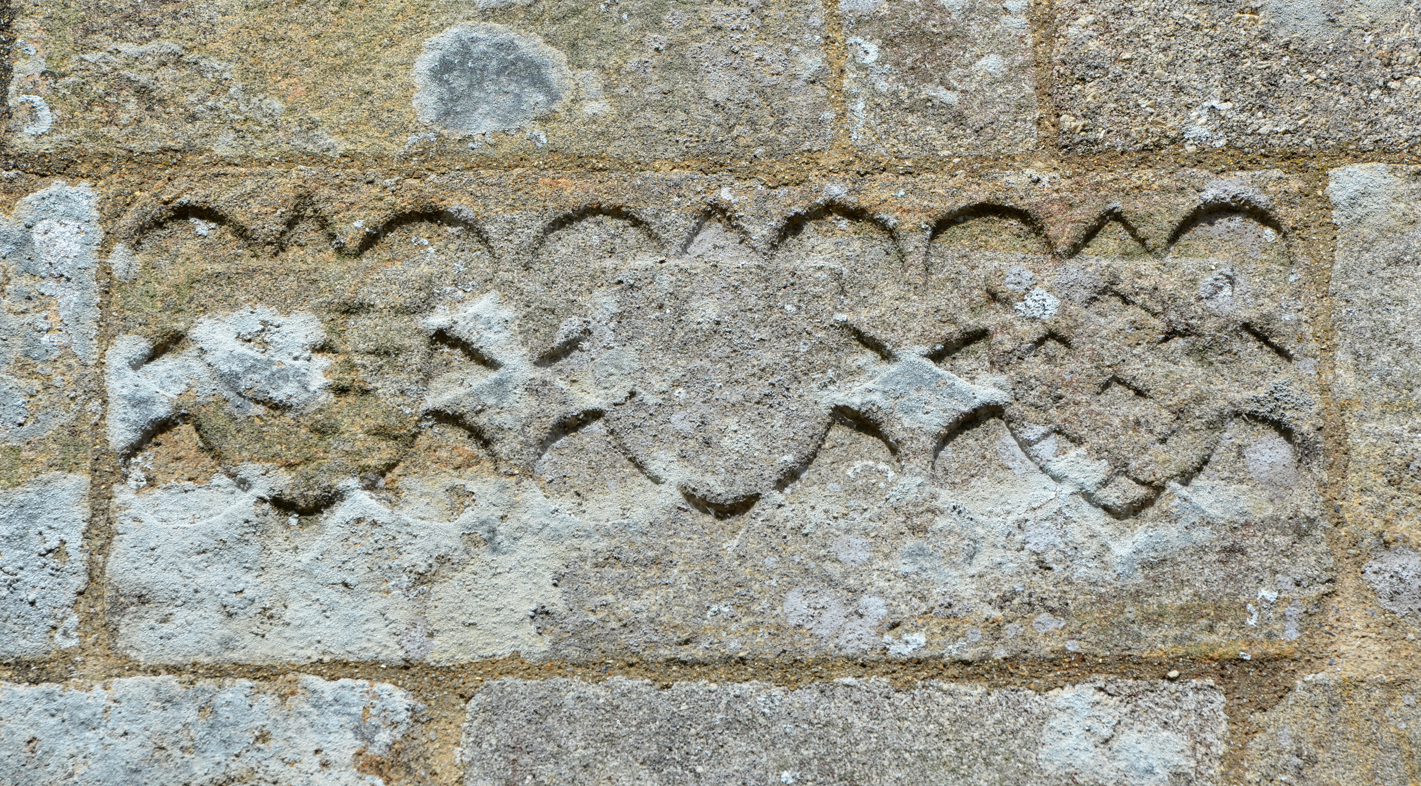 Trémel, le bourg : église paroissiale Notre-Dame, chevet à noues multiples, détail de l'une des armoiries sculptées (alliance de trois familles nobles)Immatriculation