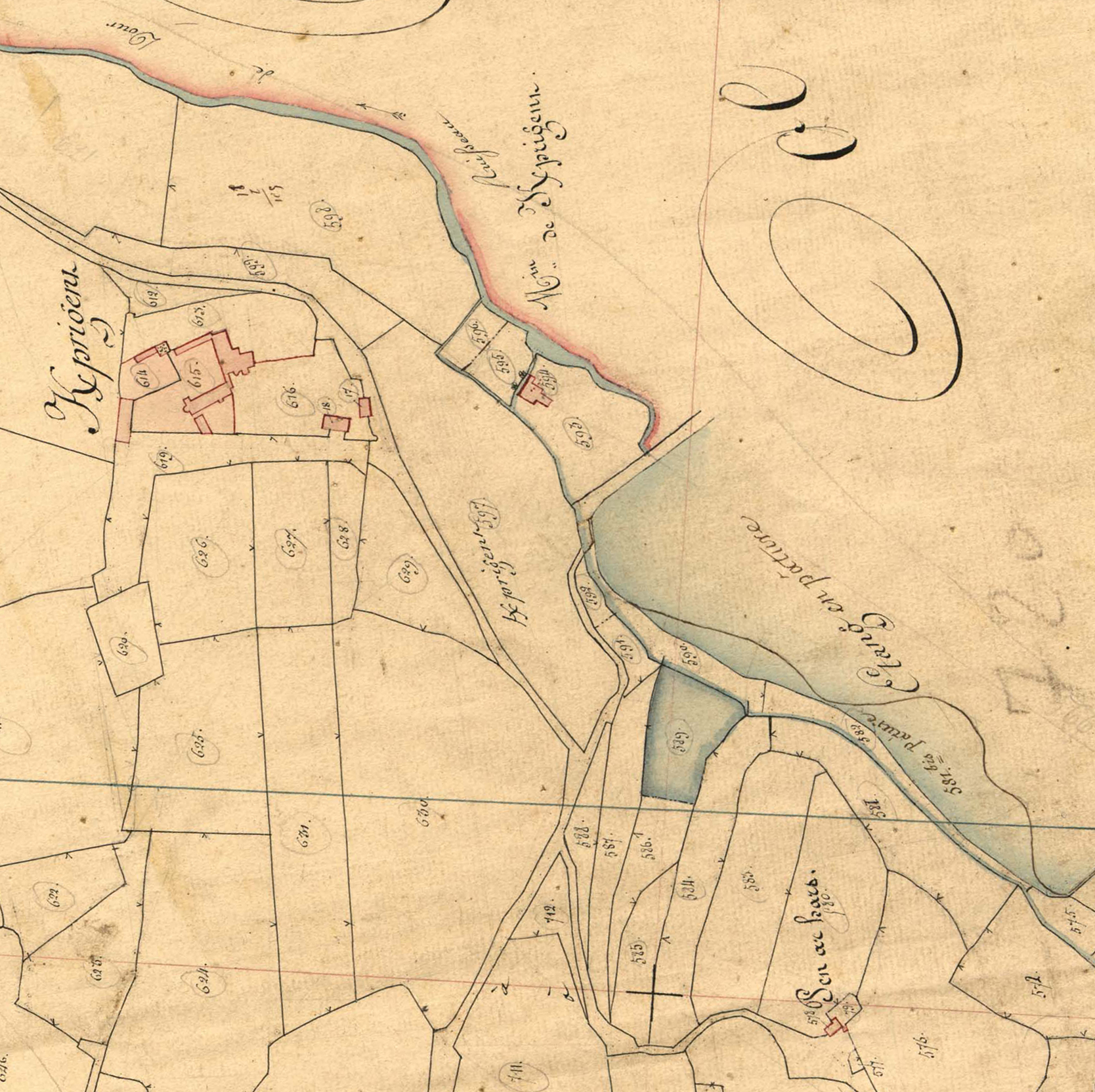 Extrait du cadastre ancien de la commune de Plufur, 1834 : moulin de KerprigentImmatriculation