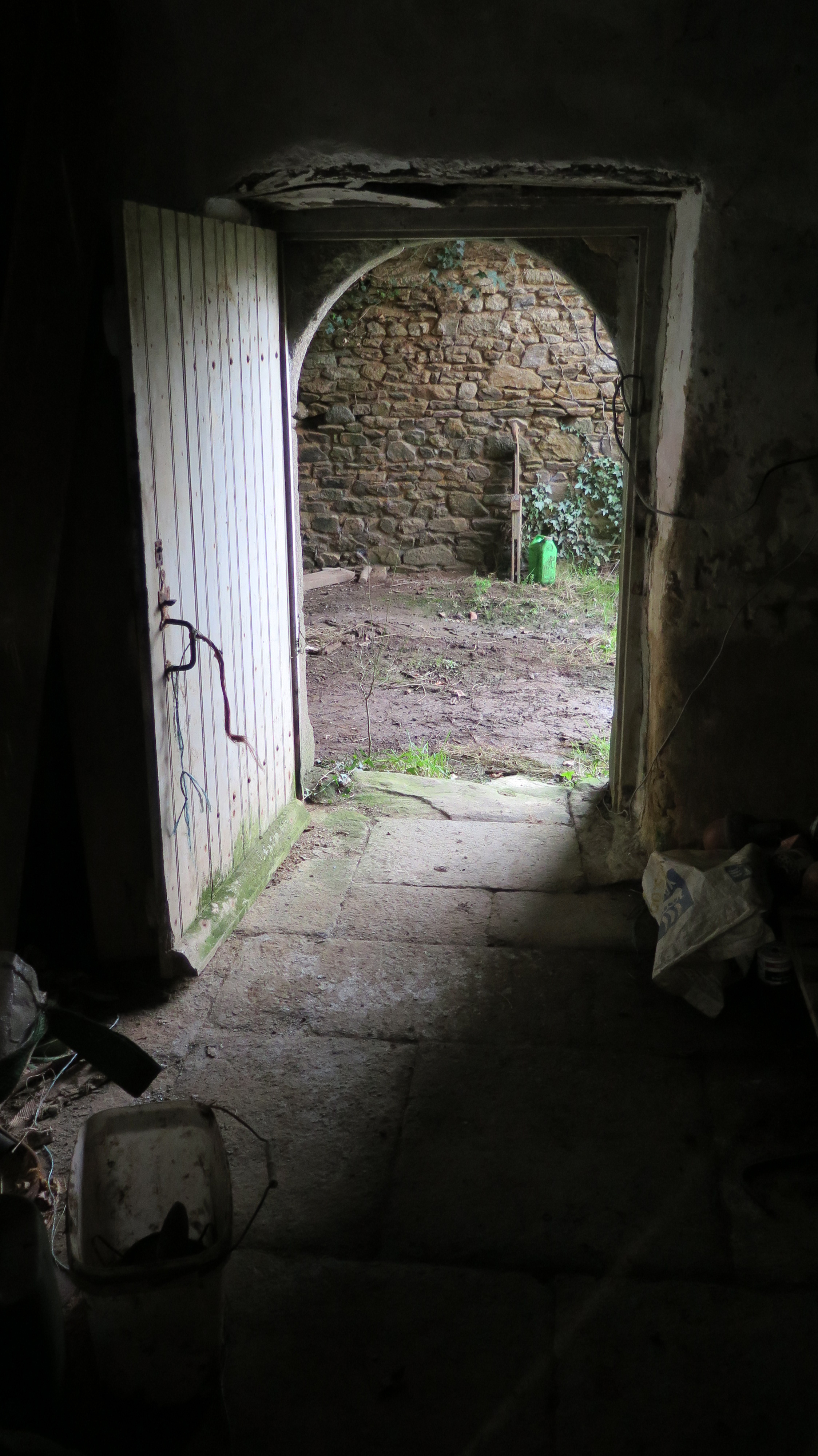 Plufur, Kerabalen Braz : logis de ferme, élévation postérieure orientée vers le nord, porte arrière. A signaler, le dallage au solImmatriculation