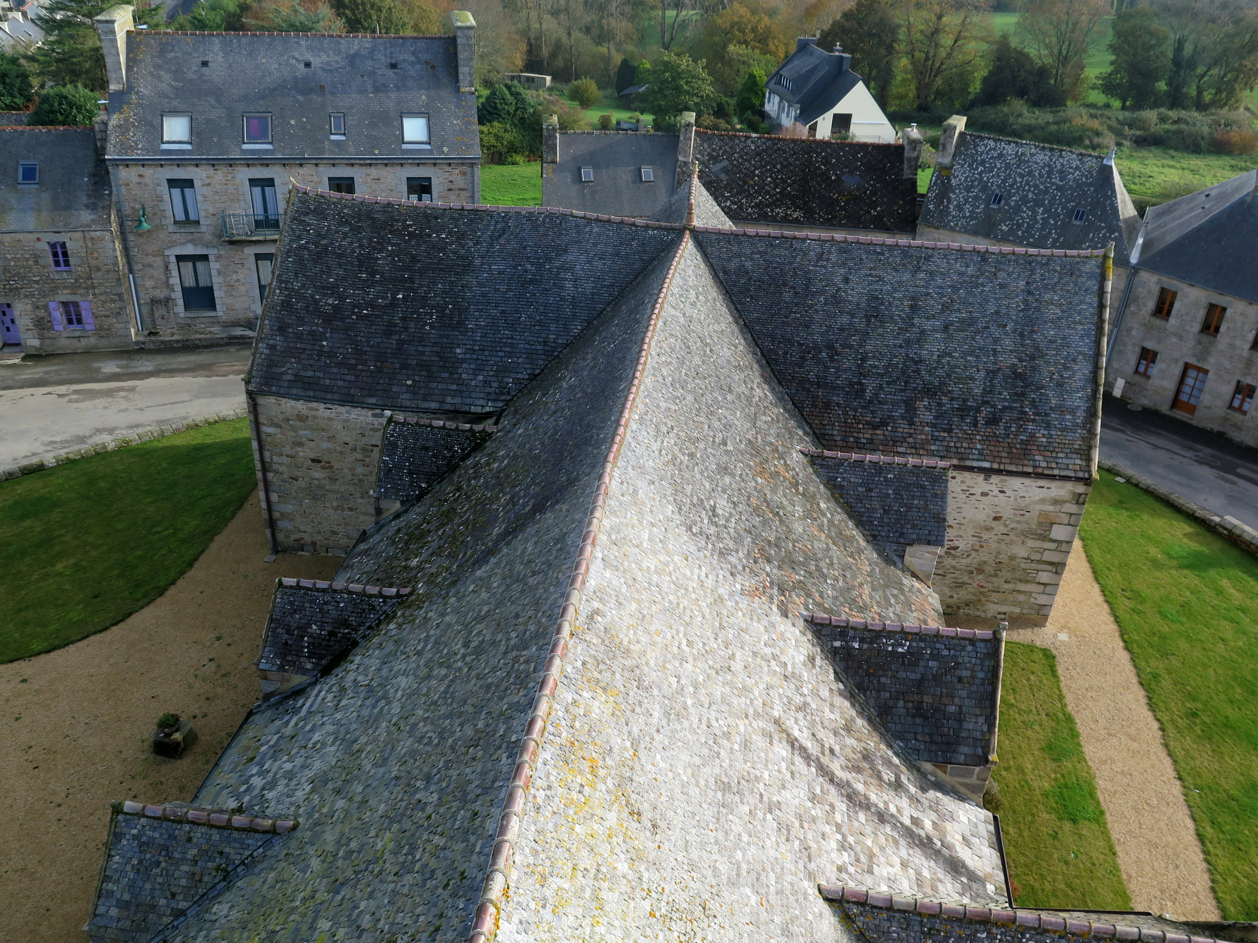 Plufur, le bourg : couverture de l'église paroissiale Saint-Florent depuis le clocherImmatriculation