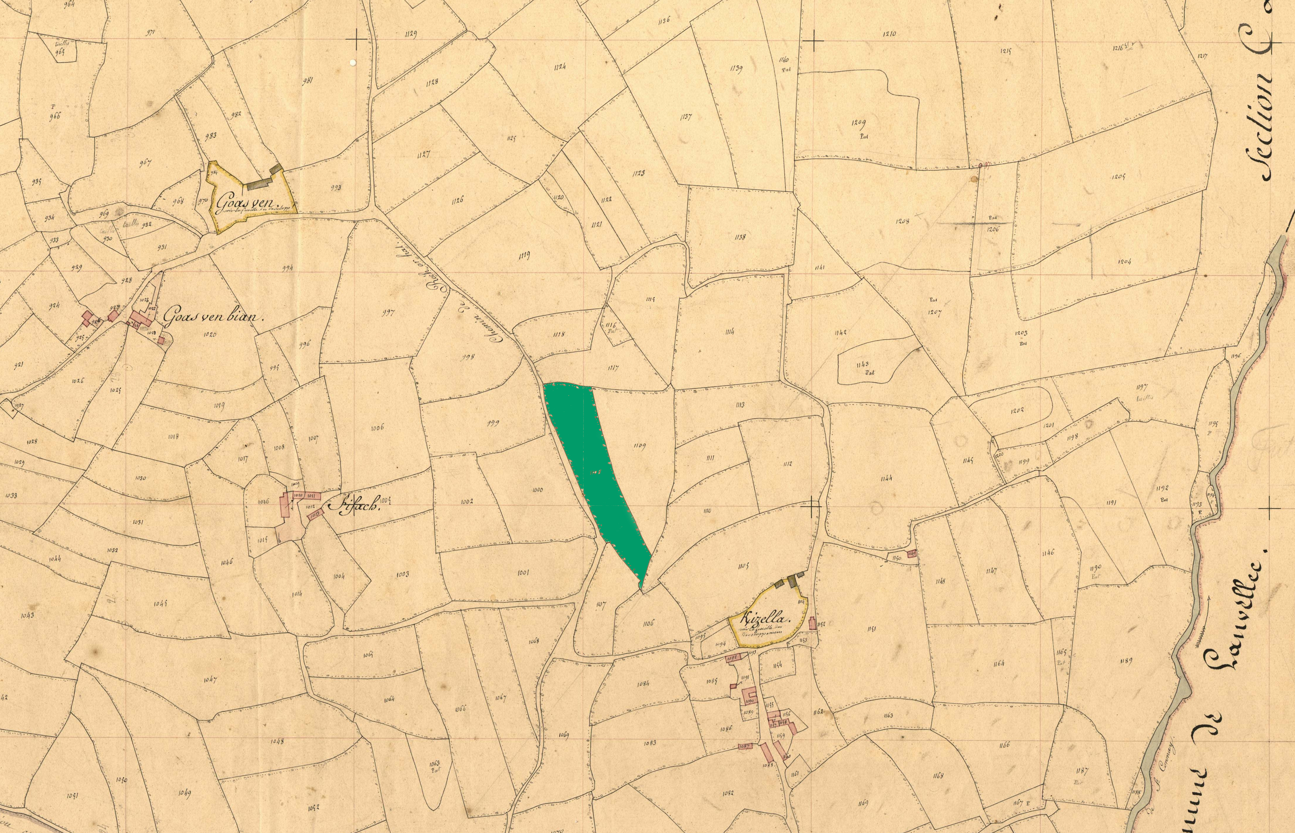 Extrait du cadastre ancien de la commune de Plufur, 1848 : Park ar Justice (en vert)Immatriculation