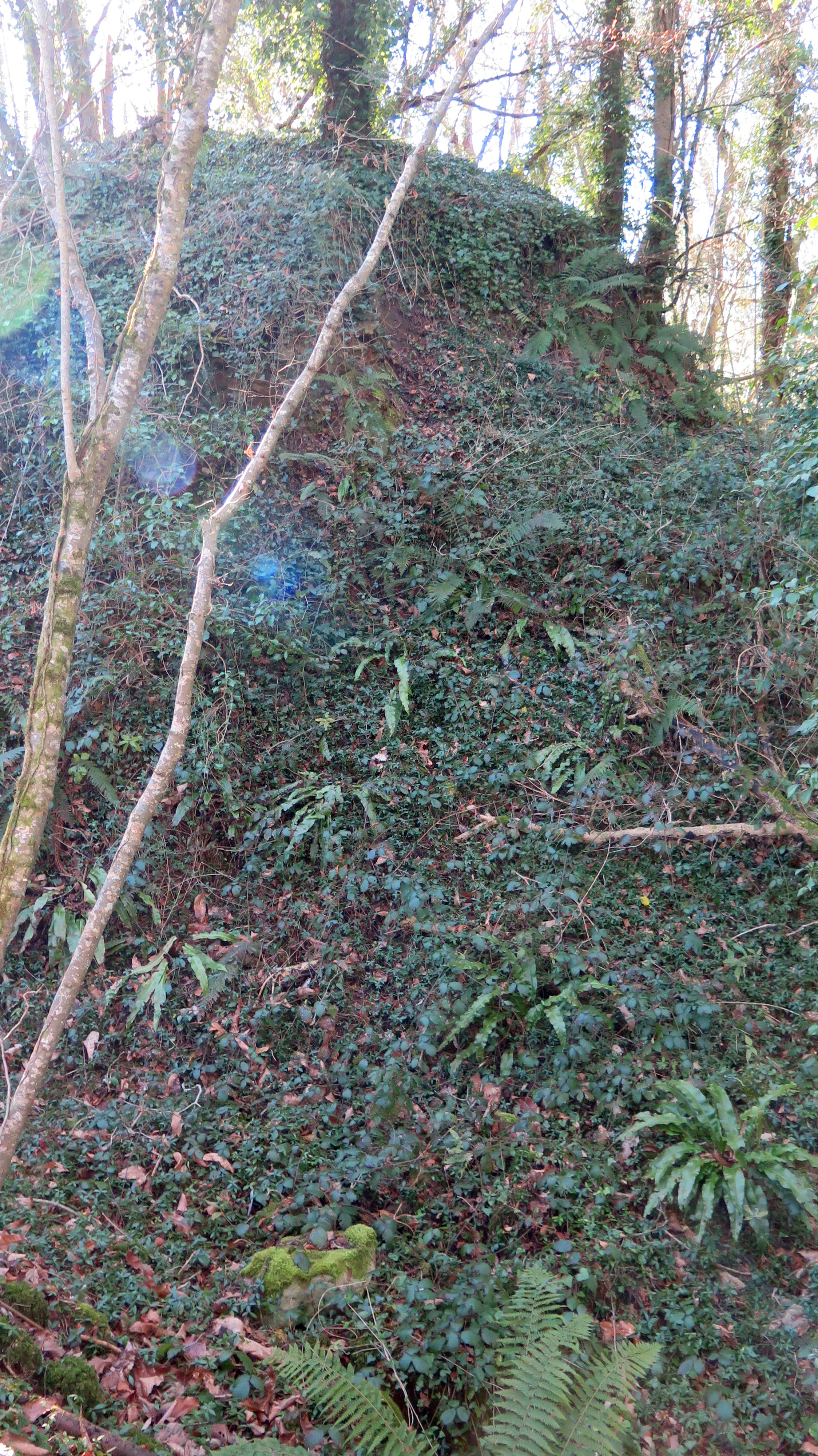 Plufur : vestiges du château fort du Plessis-Quinquis, motte et fondation du donjon situé au nordImmatriculation