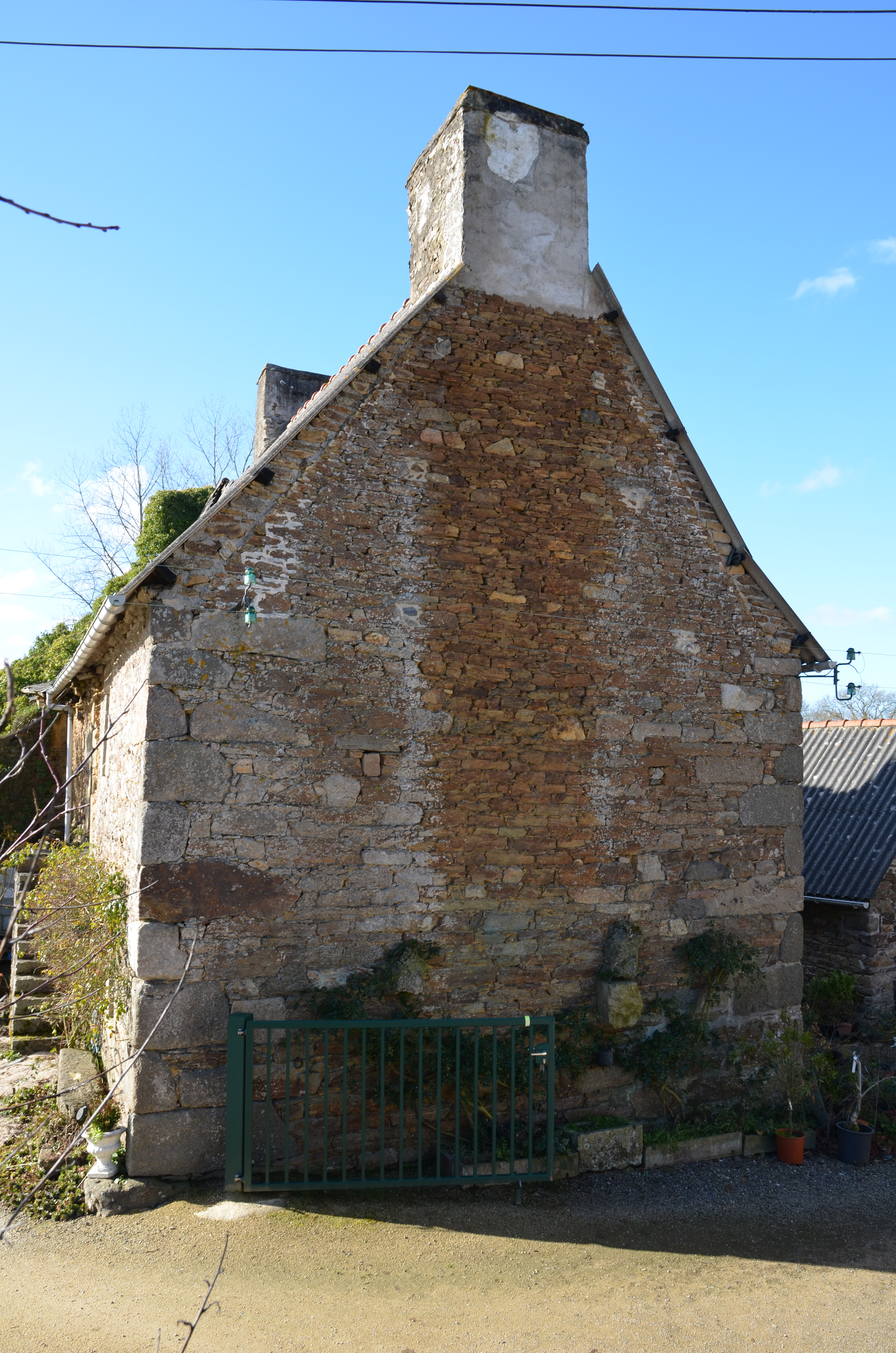 Plufur, Lesten ar Vot : alignement de deux logis de ferme, détail du pignon est. On distingue une pente ancienne beaucoup plus forte correspondant au couvrement primitif probablement végétalImmatriculation