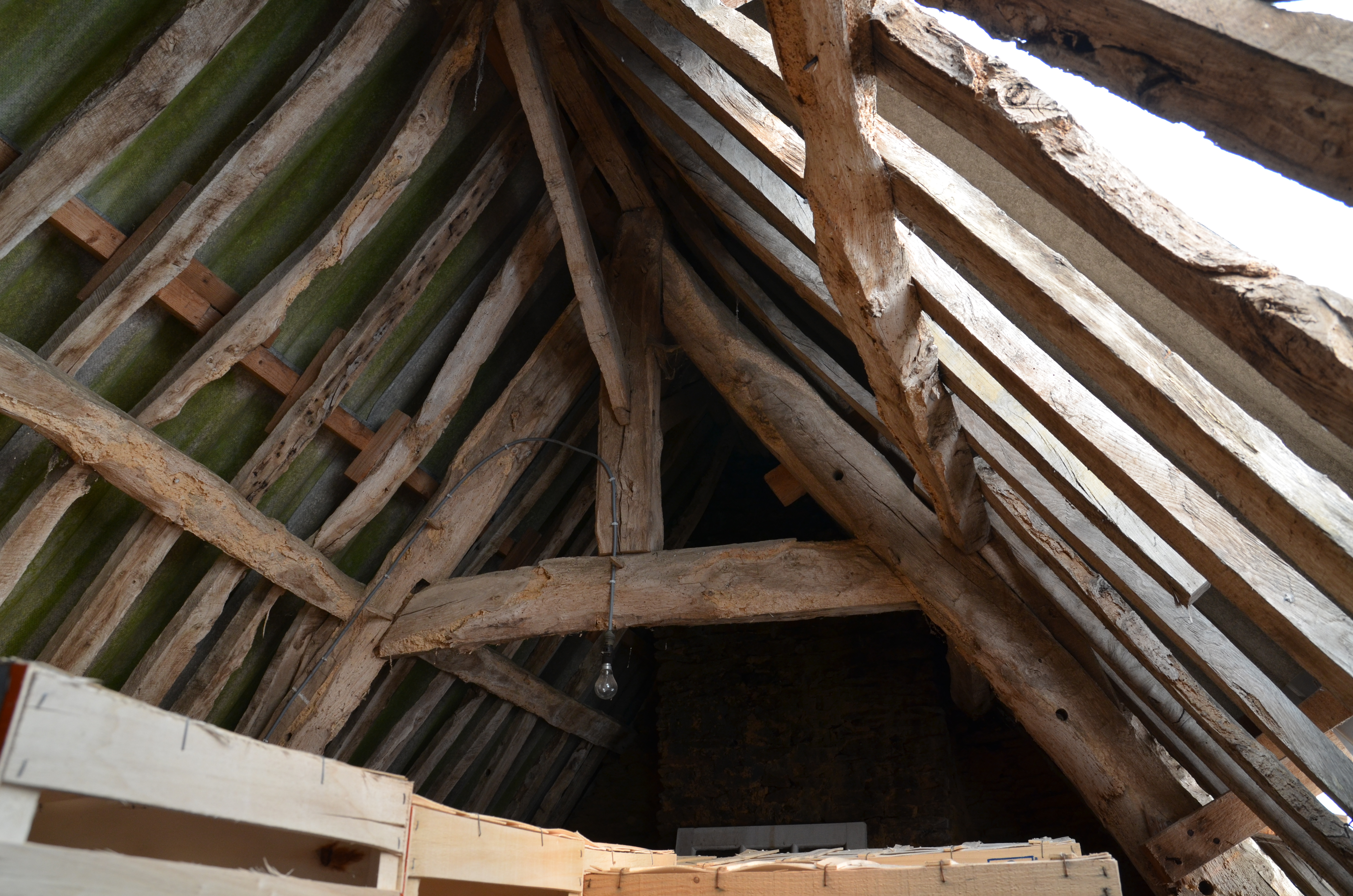 Plufur, Lesten ar Vot : alignement de deux logis de ferme, logis est, vue intérieure, charpenteImmatriculation