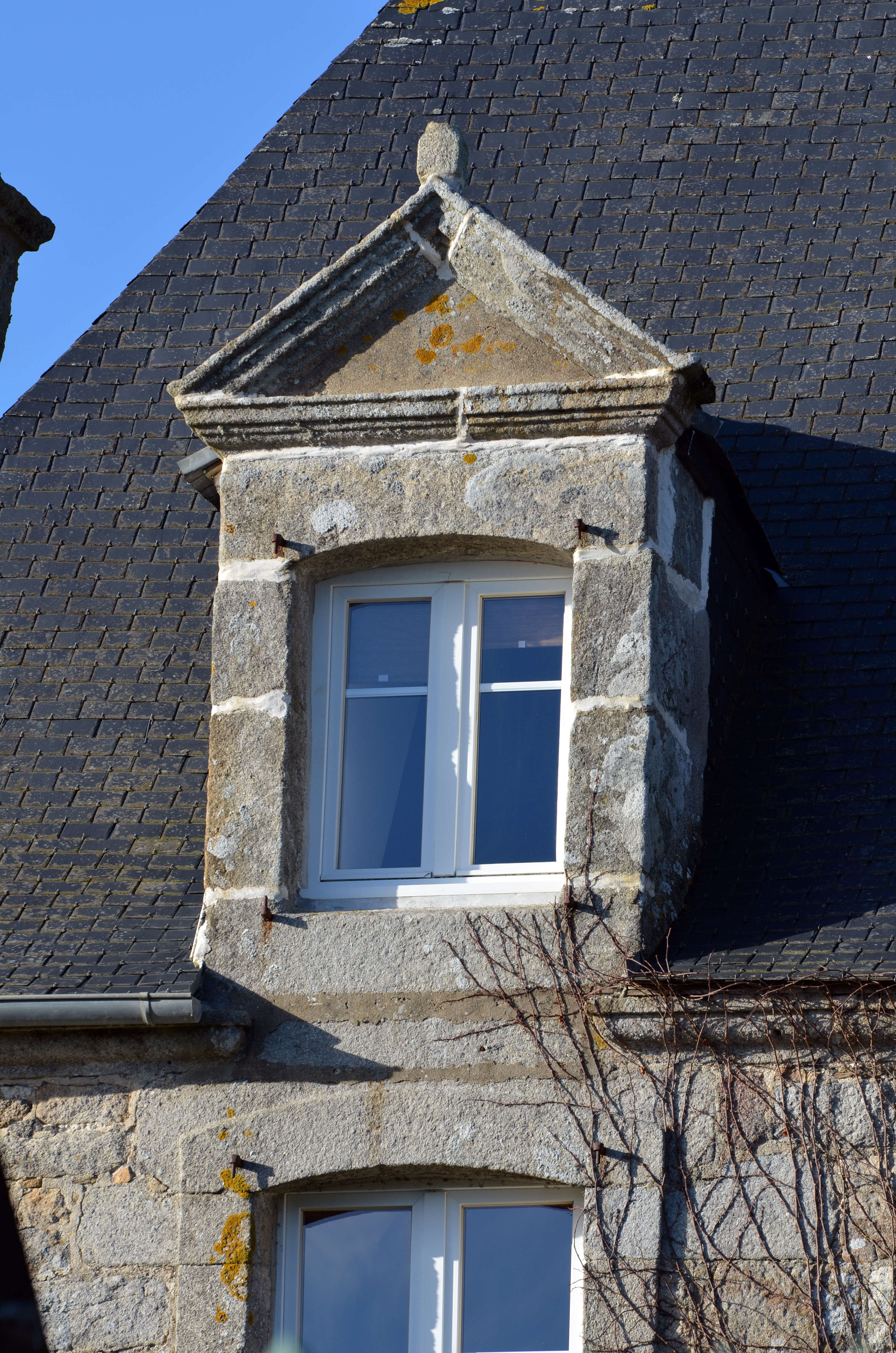 Plufur, le bourg : presbytère, détail de la lucarne ouest au fronton triangulaireImmatriculation