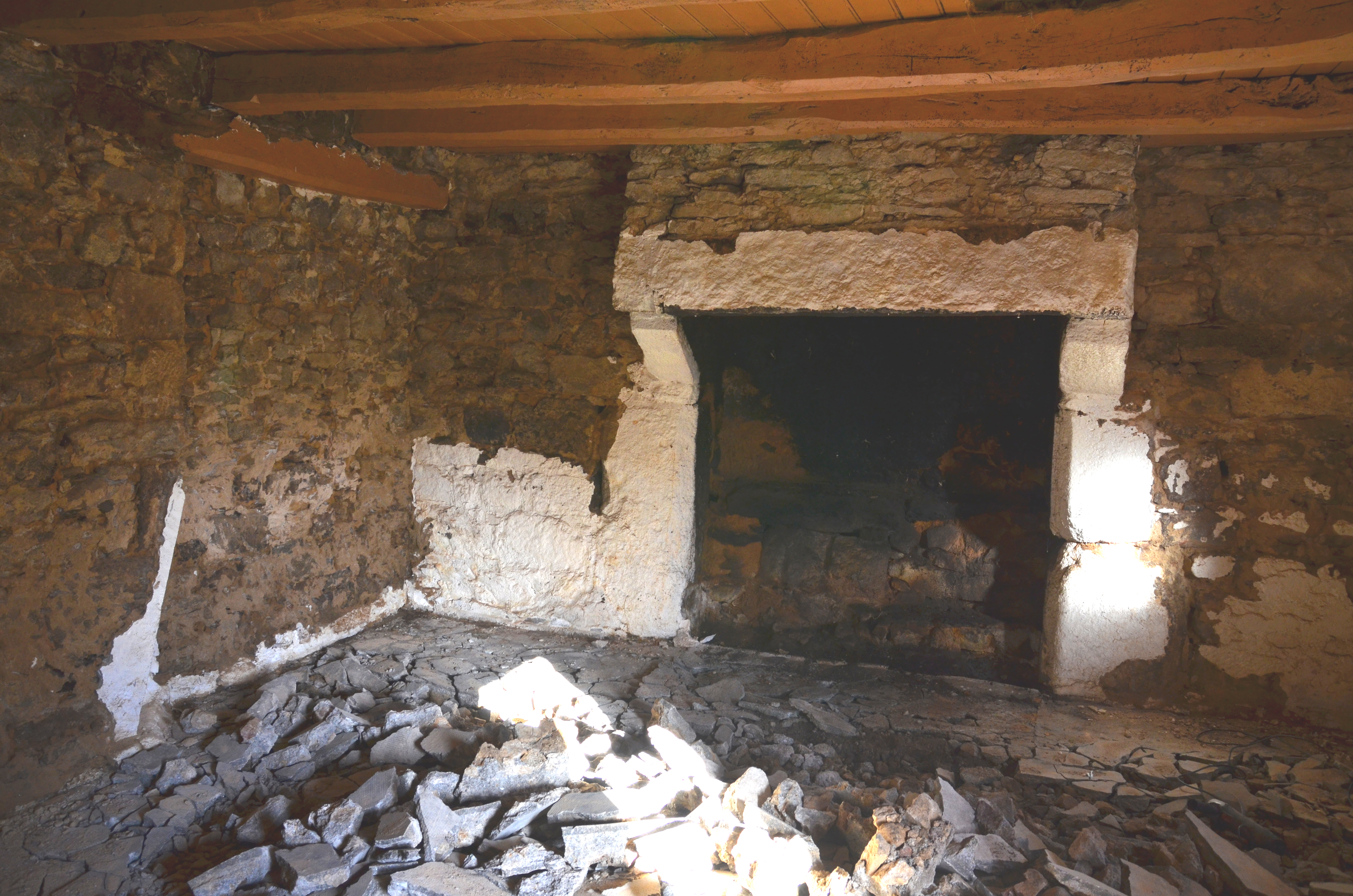 Plufur, Le Merdy : logis de ferme sud, rez-de-chaussée, cheminée et emplacement du lit-clos (Kuz Gwele)Immatriculation
