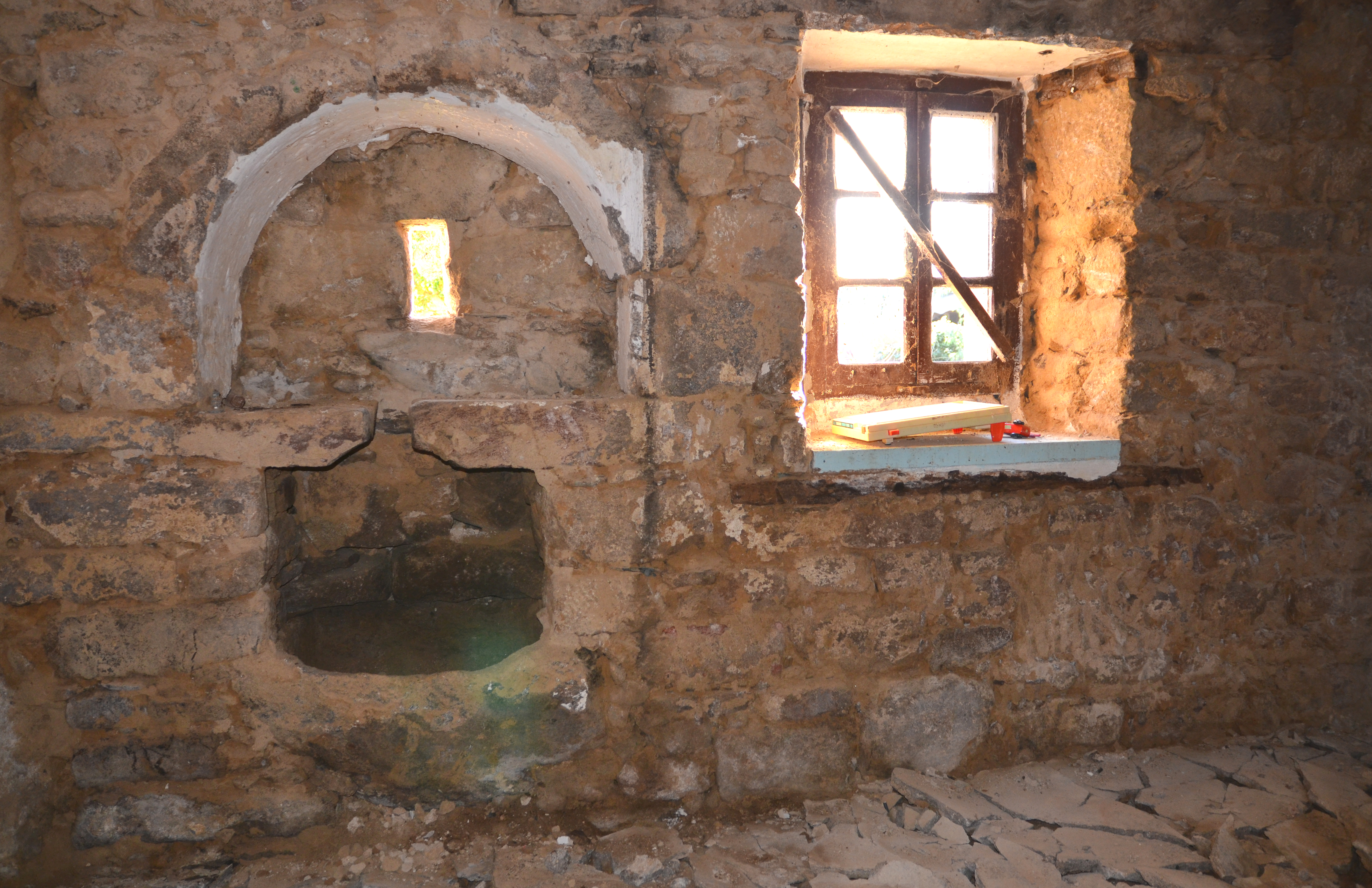 Plufur, Le Merdy : logis de ferme sud, rez-de-chaussée, fenêtre, saloir mural, pierre à saler et petit jourImmatriculation