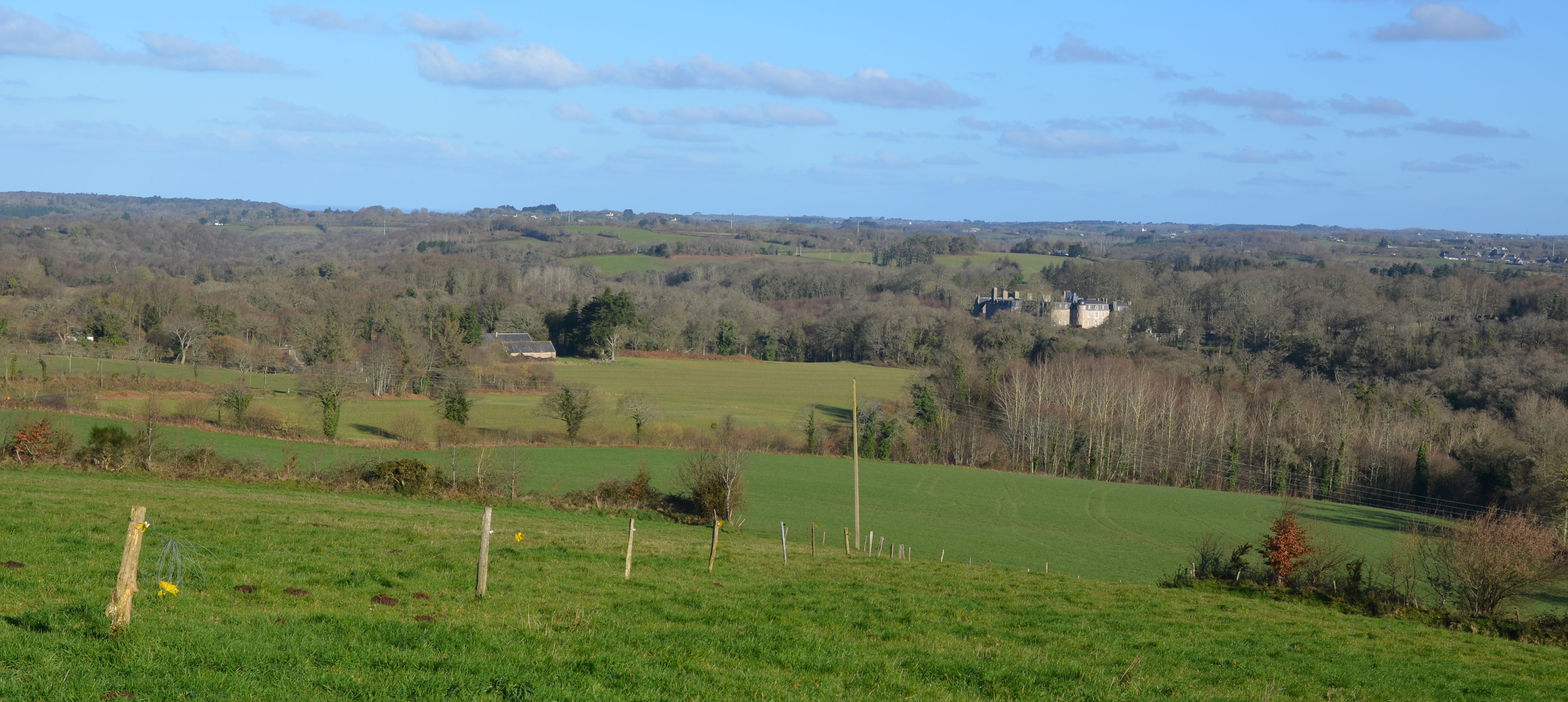 Vue de situation du château de Rosanbo à Lanvellec depuis la ferme - métairie du Run à PlufurImmatriculation