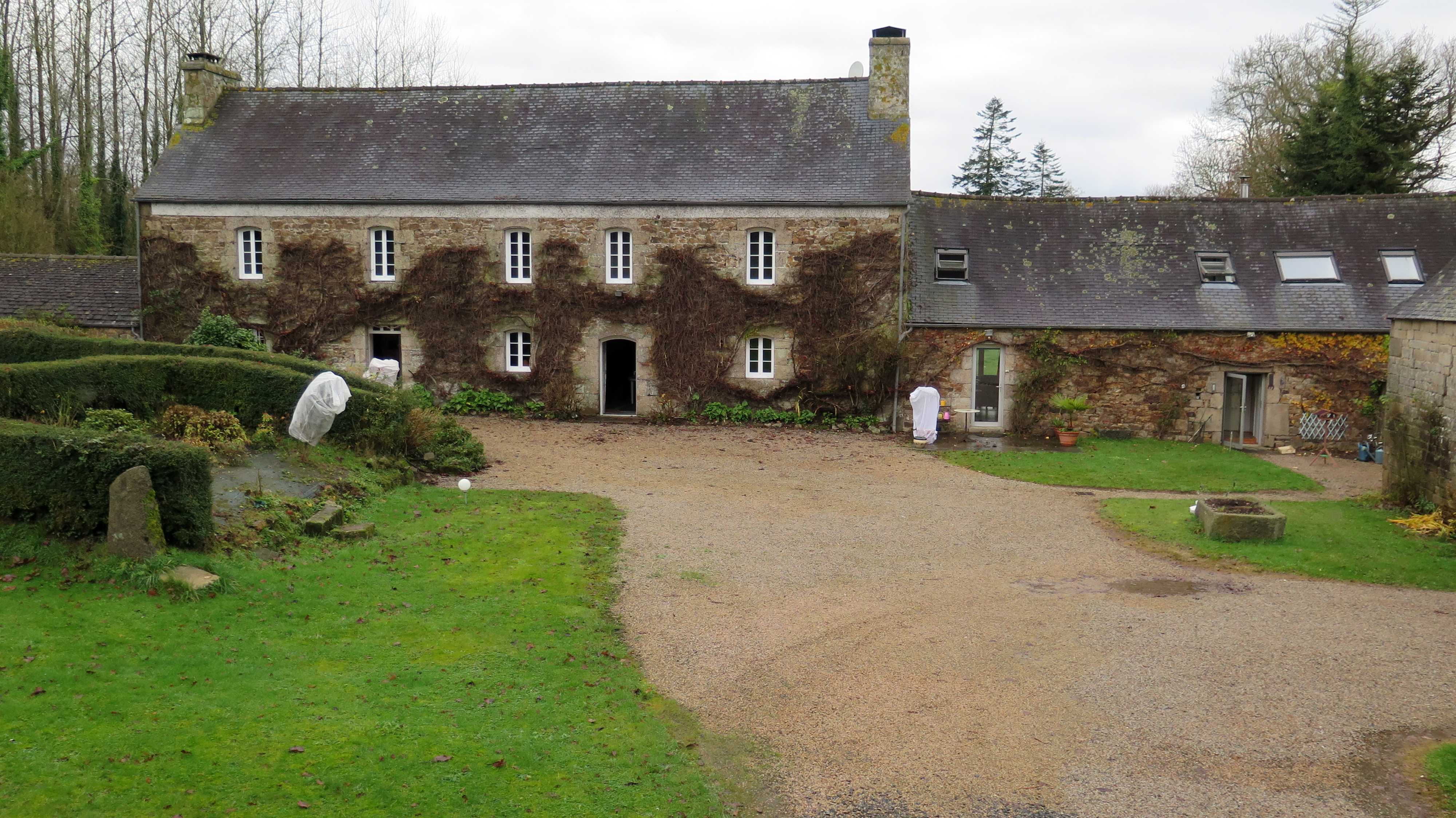 Plufur, Porz Lazou : logis de ferme, élévation antérieure orientée vers l'est-sud-est. Ce logis du 19e siècle a été construit en deux phases et surélévéImmatriculation