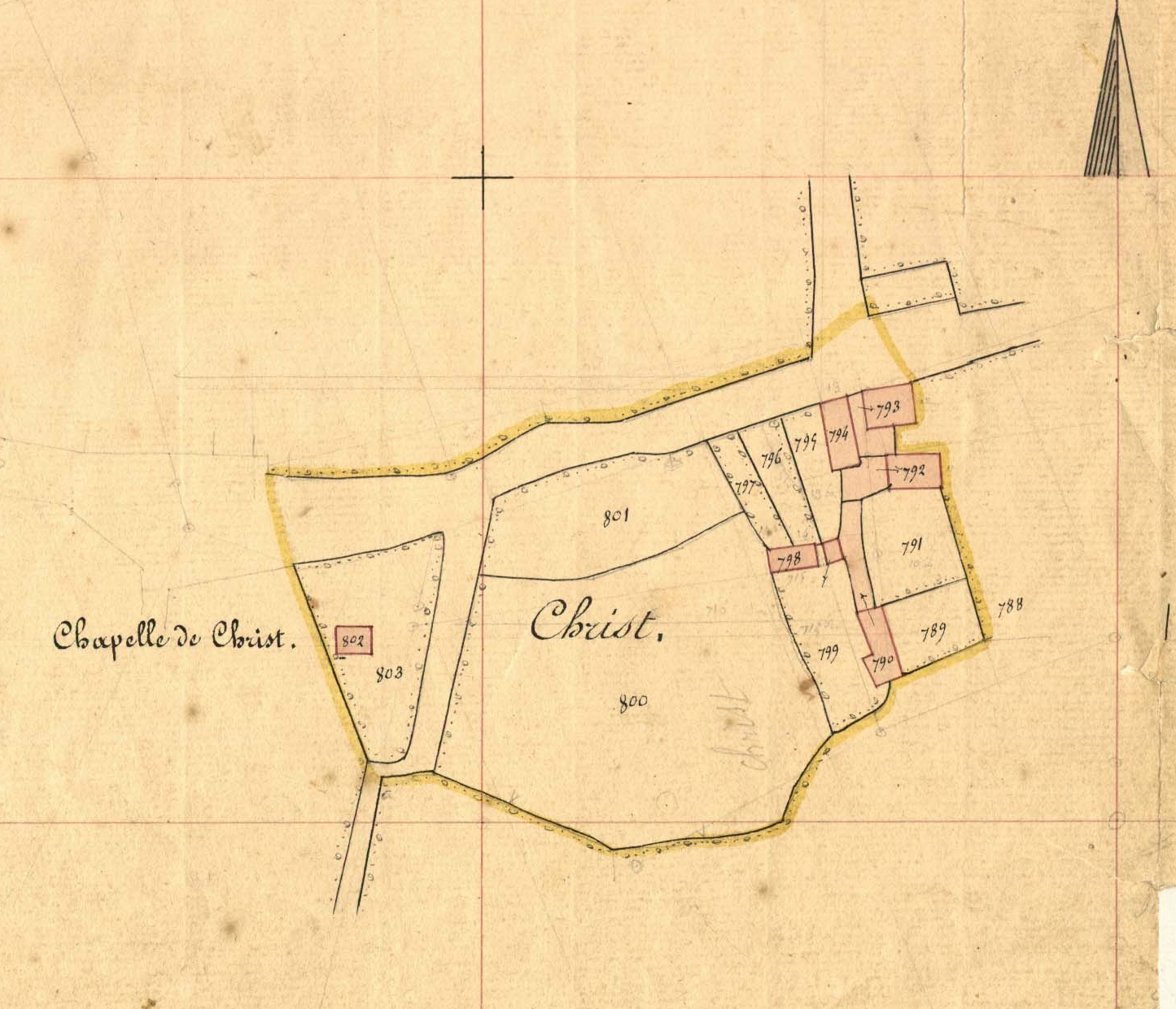 Extrait du cadastre ancien de la commune de Plufur, 1848 : Section D3 du Manach'Ty, chapelle de Christ, Christ [hameau]Immatriculation