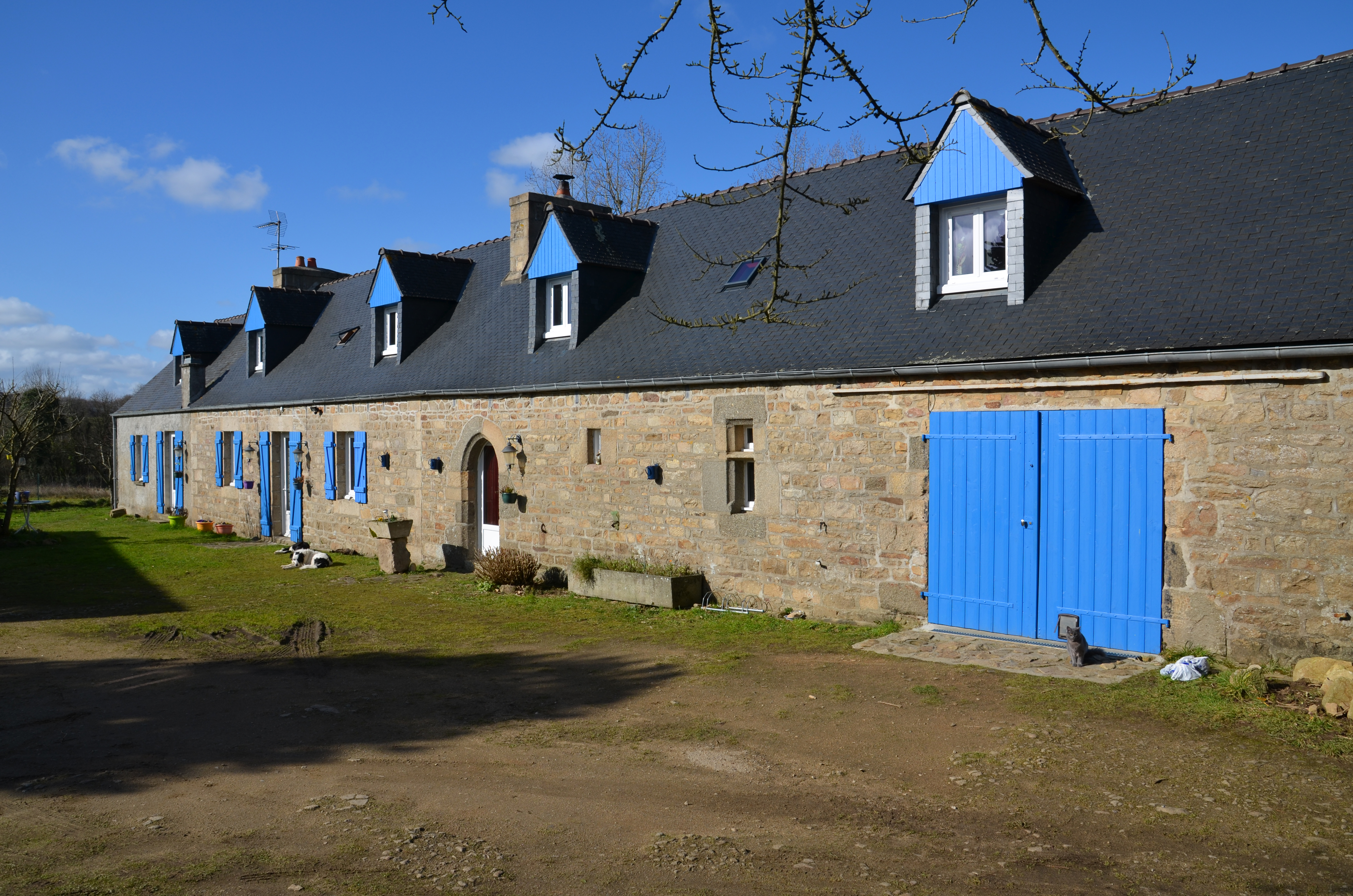 Plufur, Kerfubu : ferme, élévation antérieure orientée vers le sud-est. Porte en arc brisé et fenêtre à traverse nous indiquent le logis primitif datable des années 1580-1600Immatriculation