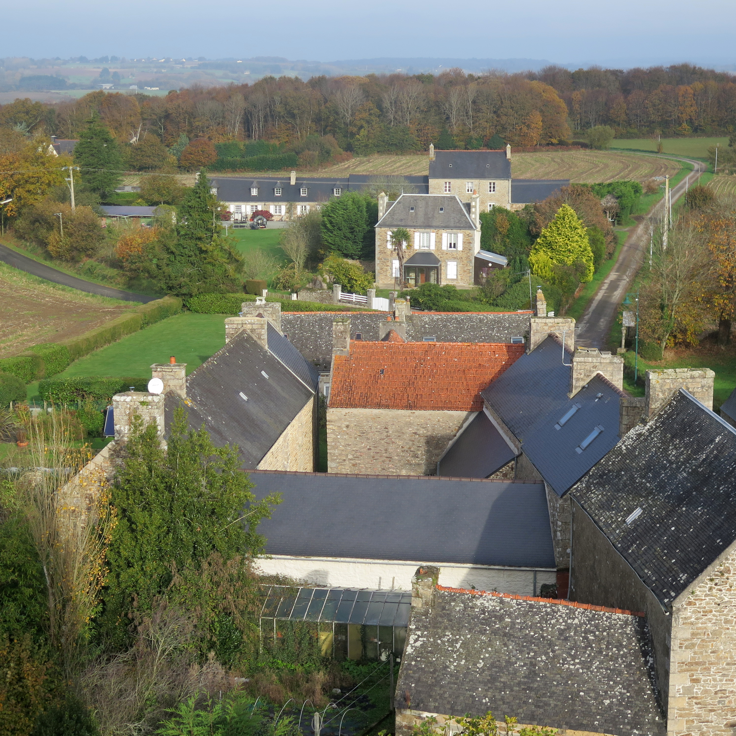 Plufur, le bourg : vue générale vers le nord (Kertanguy) depuis le clocher de l'égliseImmatriculation