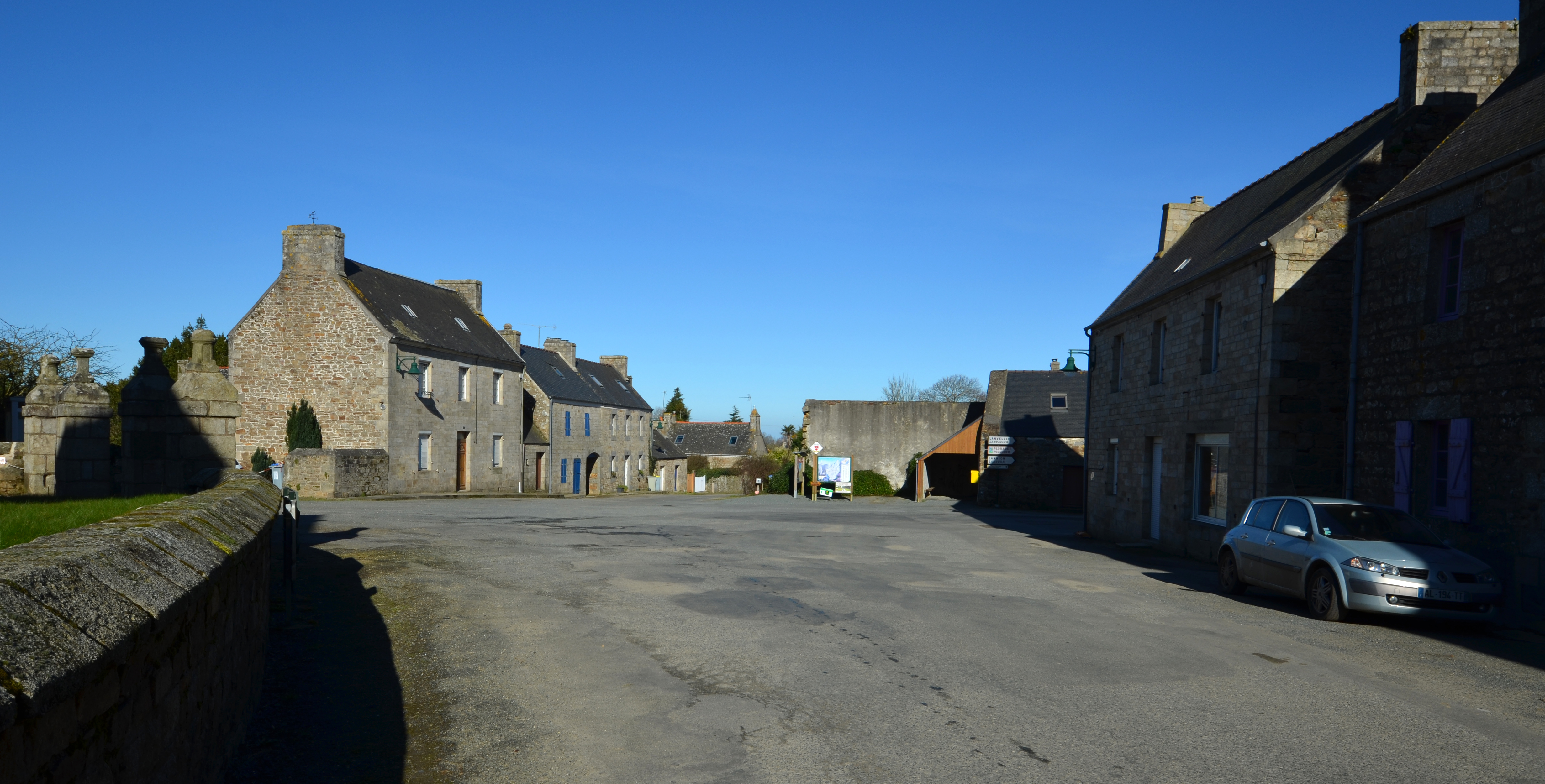 Plufur, place Jean-Moulin : vue générale de la place depuis le sud-estImmatriculation