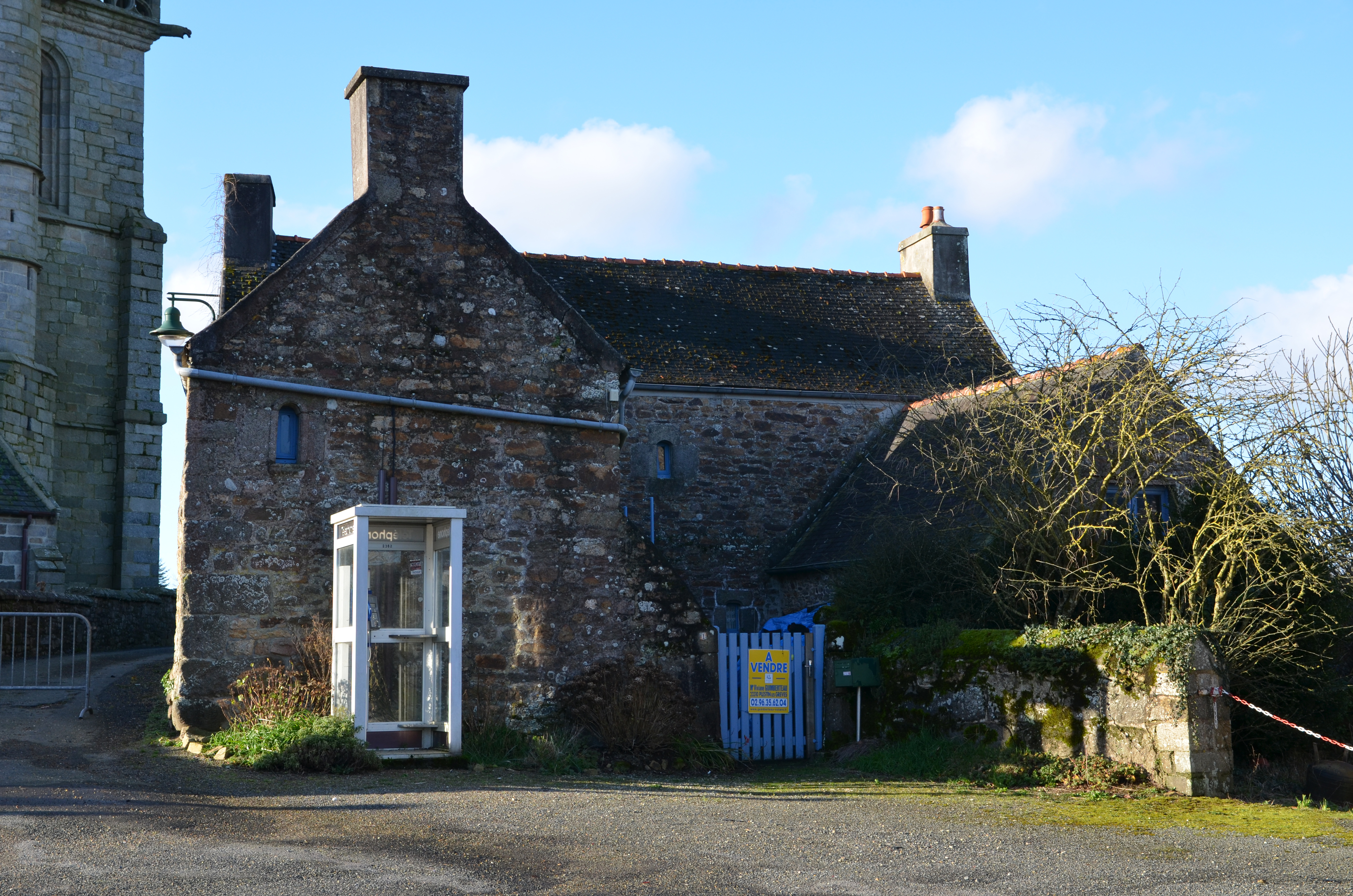 Plufur, place Jean Moulin (1) : maison (ancienne maison de prêtre ?), cour orientée vers le nord-est. Cet édifice est vraisemblablement datable du 4e quart 16e siècle ; il a été remanié au 18e siècleImmatriculation