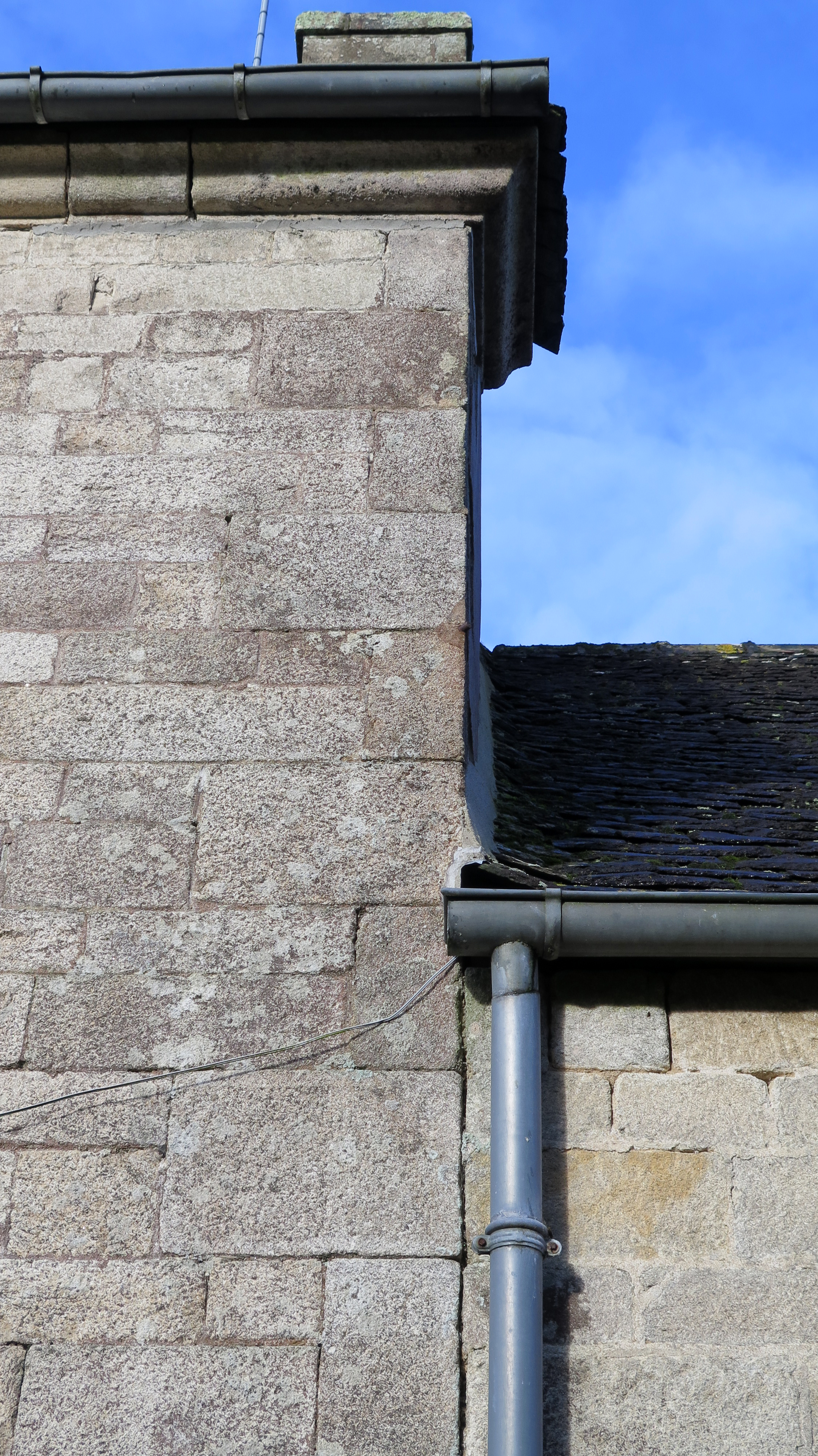 Plufur, Croaz Berr : logis de ferme, élévation antérieure orientée vers le sud-est, vue de détail de l'appareillage en pierre de taille de graniteImmatriculation