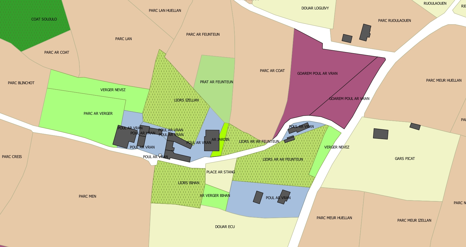 Plufur : analyse microtoponymique à partir des données du cadastre moderne (cartographie : Guillaume Lécuillier, avril 2015)Immatriculation