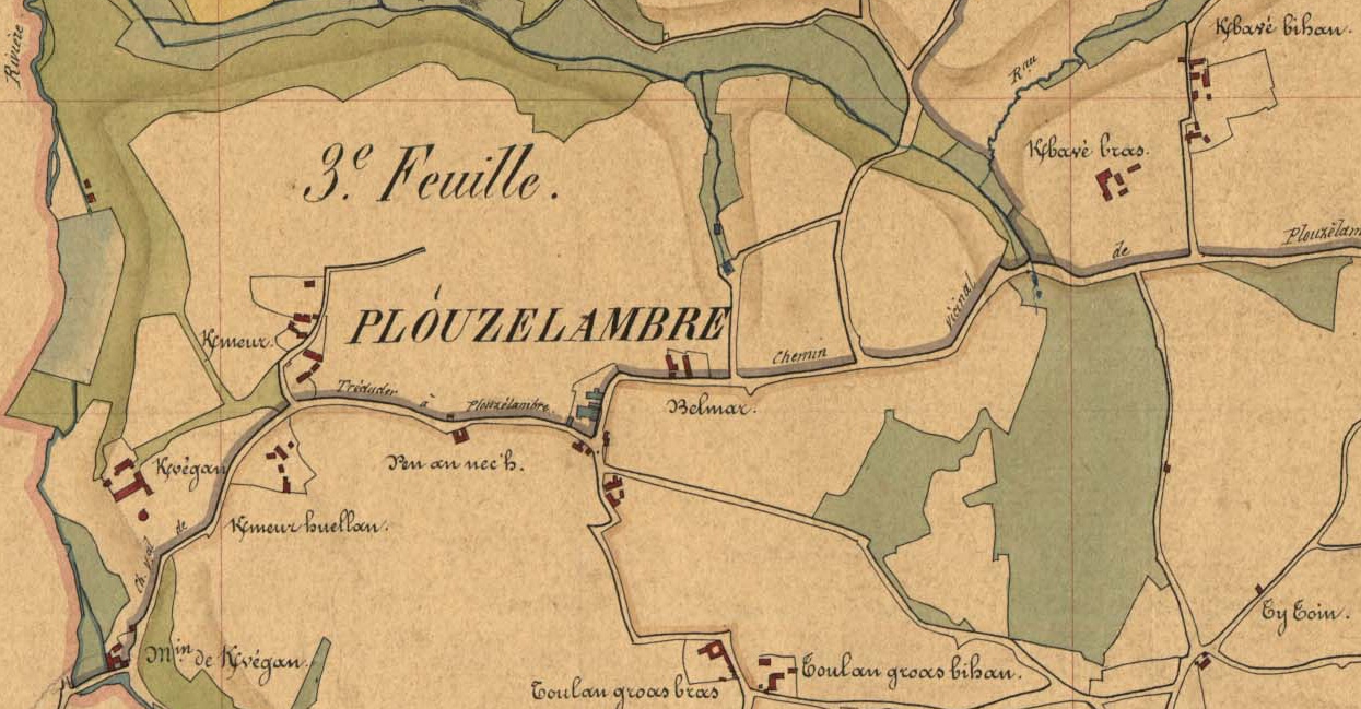 Extrait du tableau d'assemblage du cadastre ancien de la commune de Plouzélambre, 1848Immatriculation