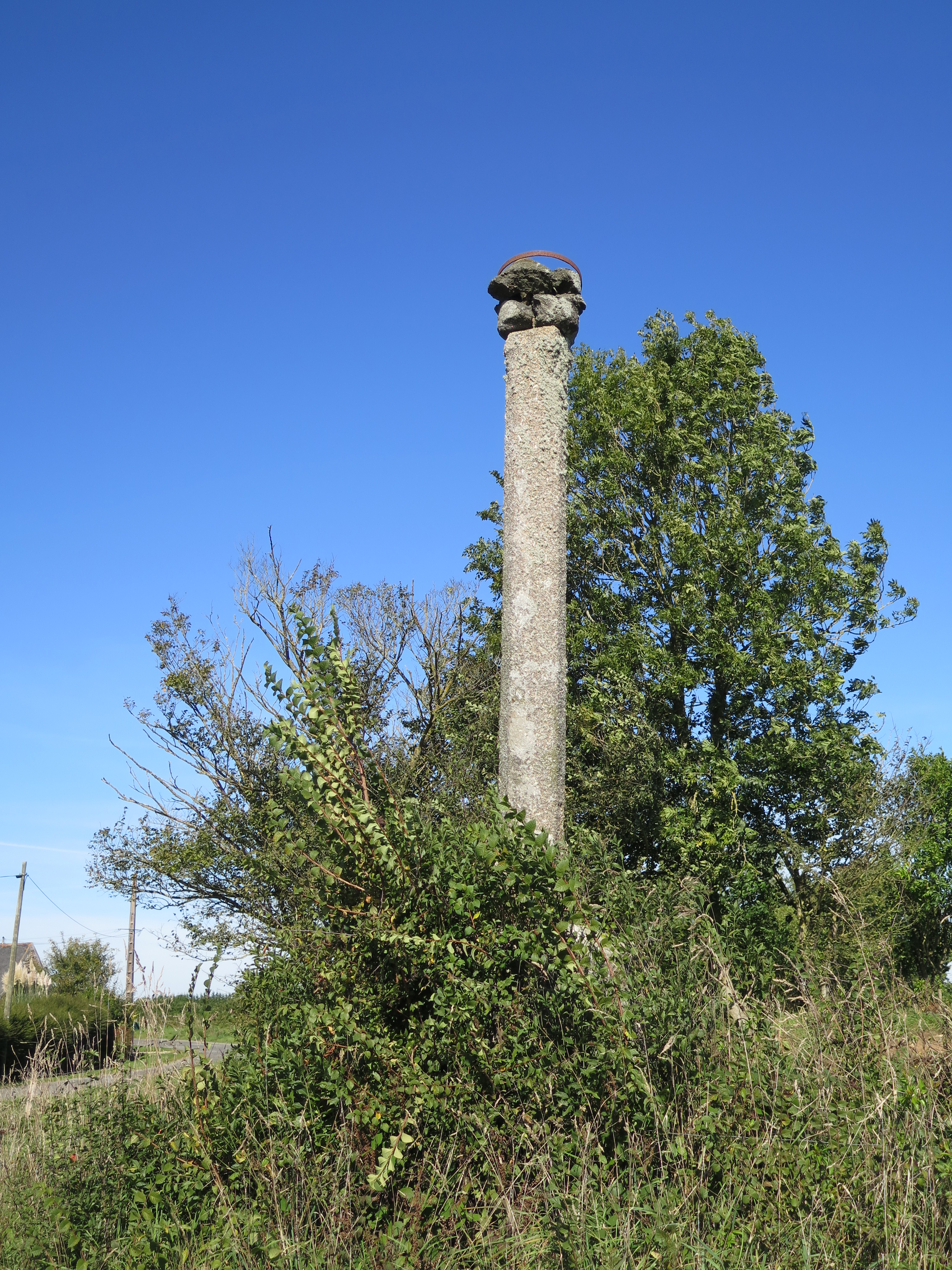 Plouzélambre, entre Run ar Spern et Kergaradeg : croix de chemin, fût en granite. La croix sommitale a disparuImmatriculation